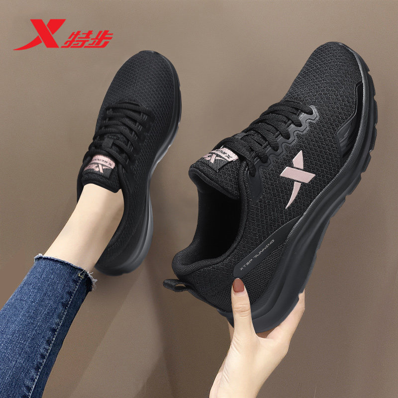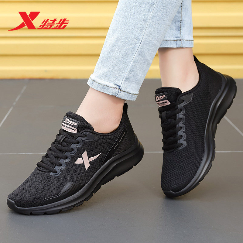 特步运动鞋女鞋跑步鞋2026新款夏季薄款网面透气休闲鞋子黑色跑鞋