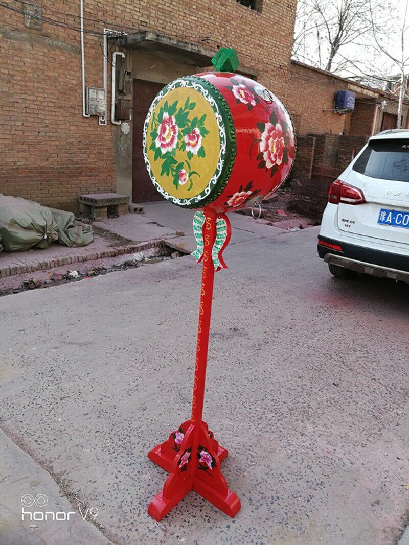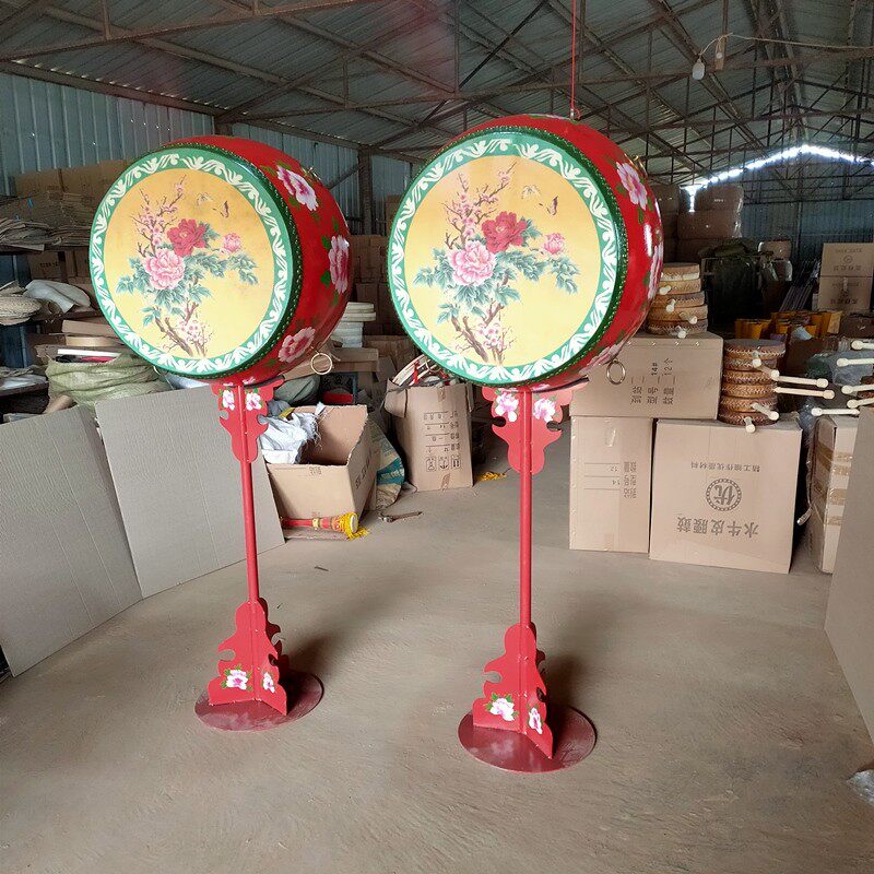 花鼓彩绘红鼓摆放装饰建鼓道具鼓汉代十面埋伏鼓牛皮鼓大小鼓架子
