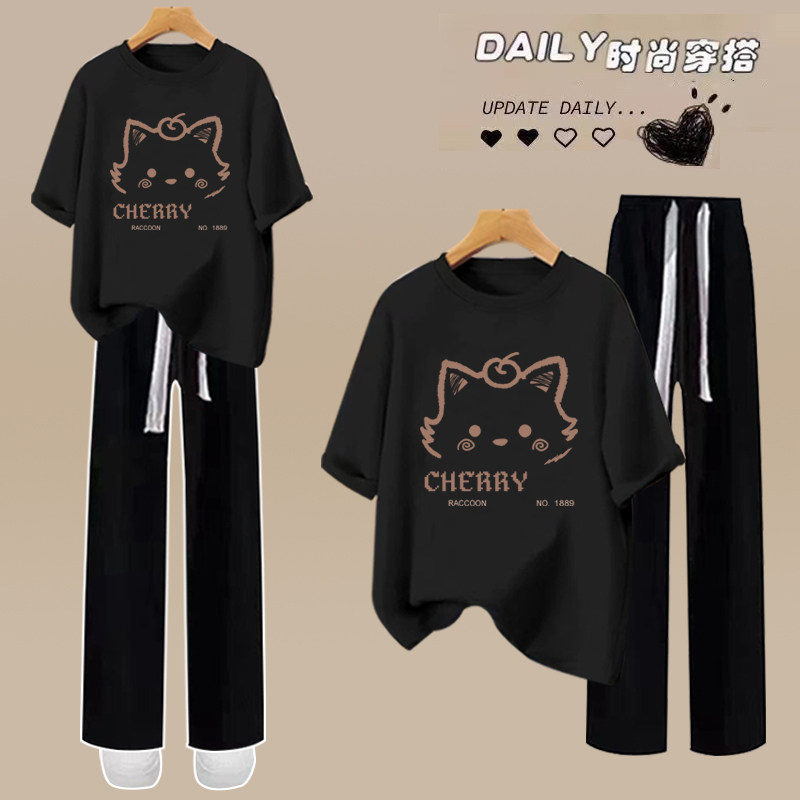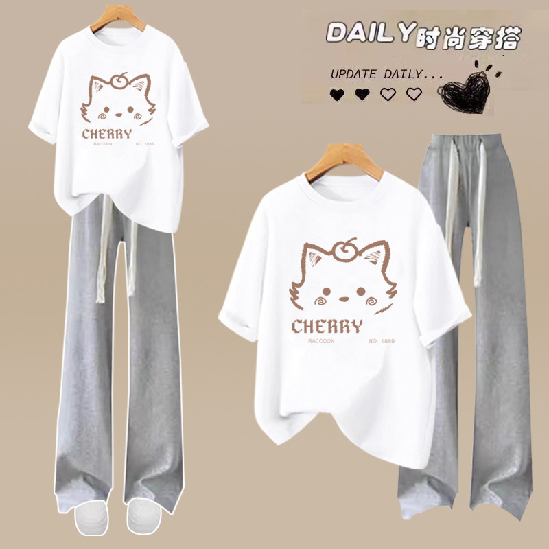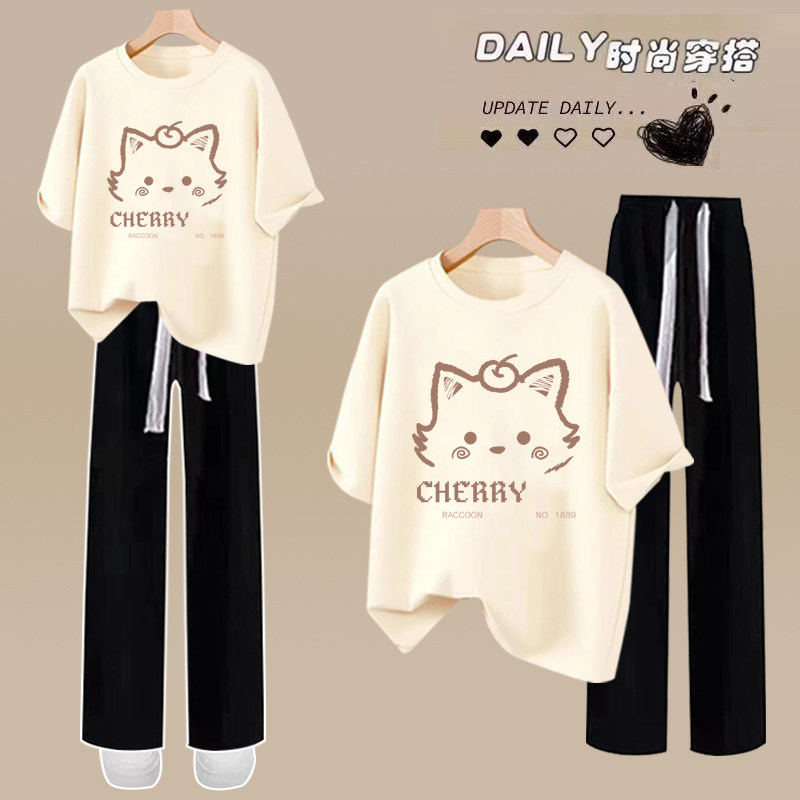 套装女童夏2026新款爆款高级感纯棉短袖中大童超火的t恤阔腿裤子