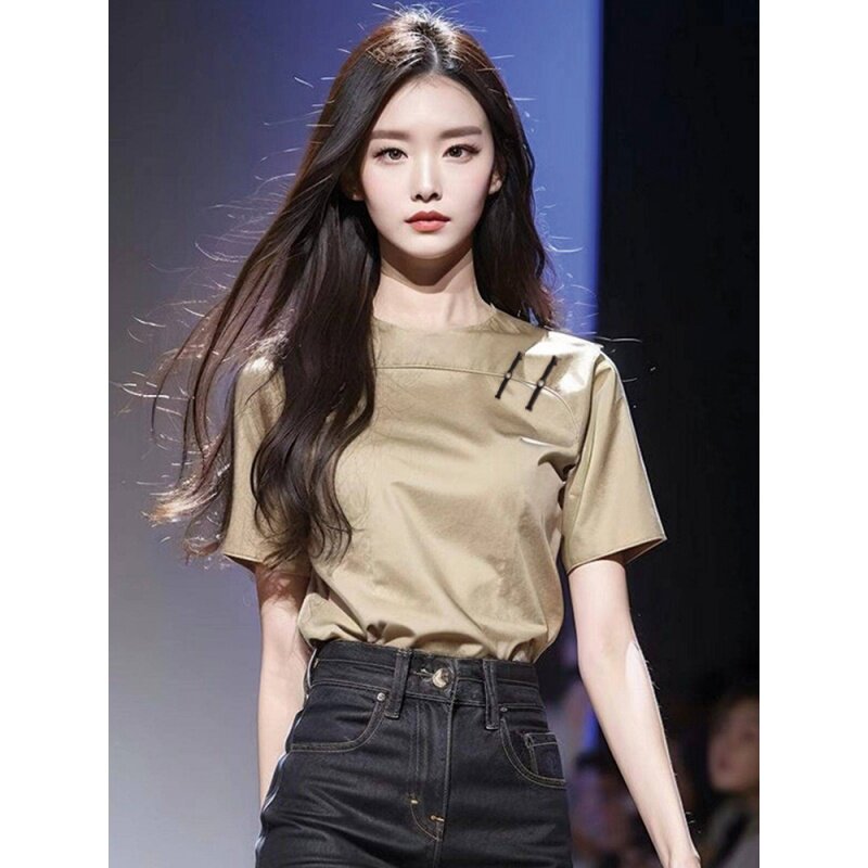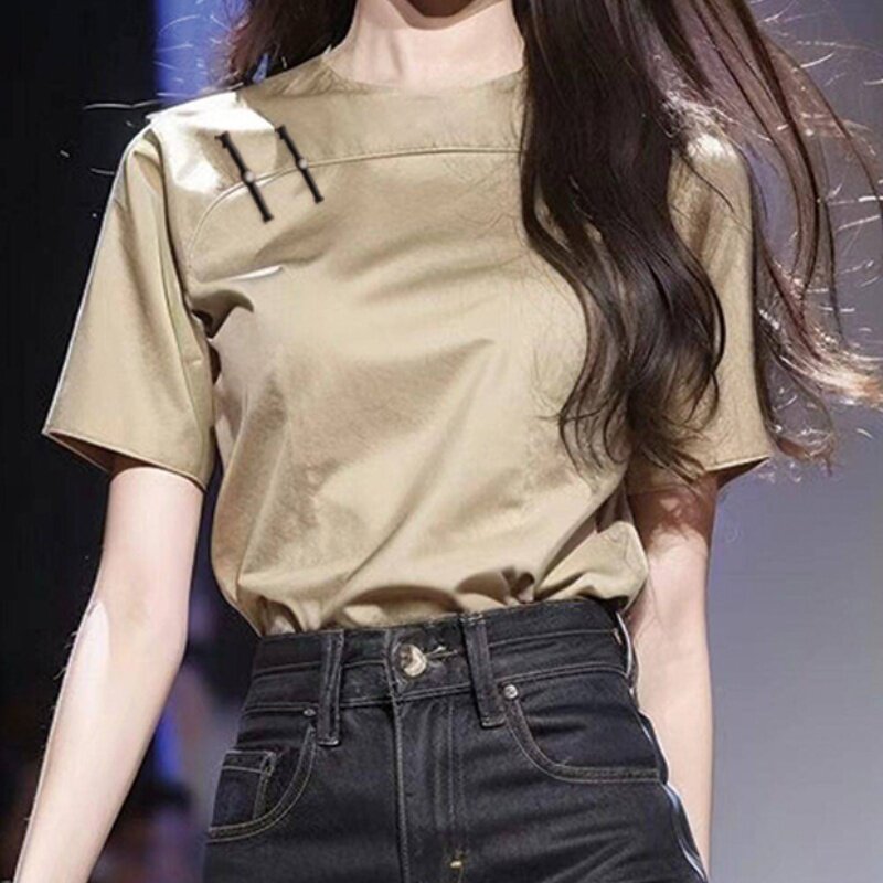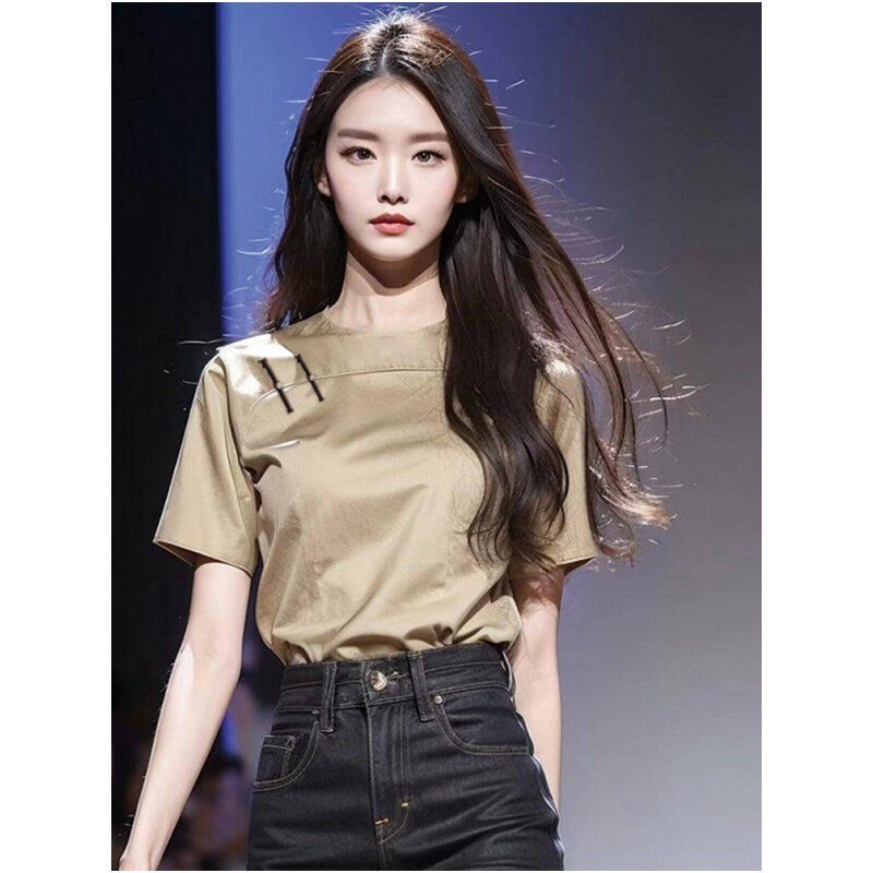 今年流行爆款上衣新中式女装卡其色国风盘扣短袖衬衫2026早春新款