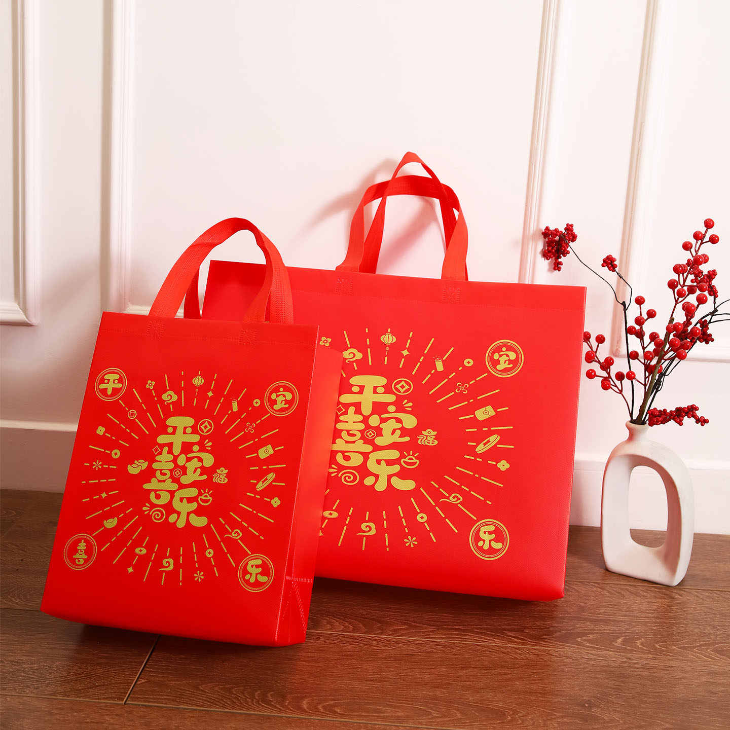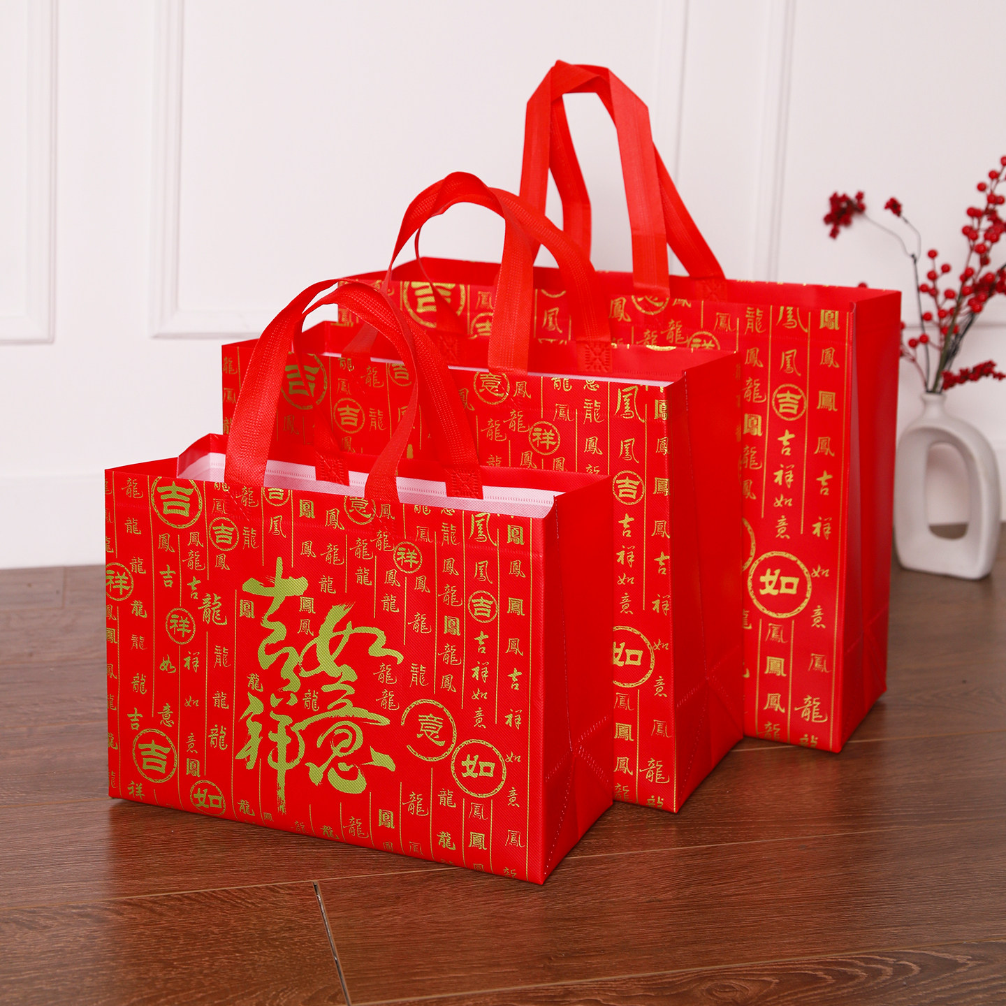 喜庆红色礼品袋大号新年年货无纺布覆膜手提袋零食礼包烟酒送礼袋