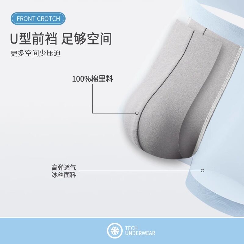 雅鹿男士内裤男款冰丝无痕纯棉裆男生四角短裤头夏季薄款平角裤衩