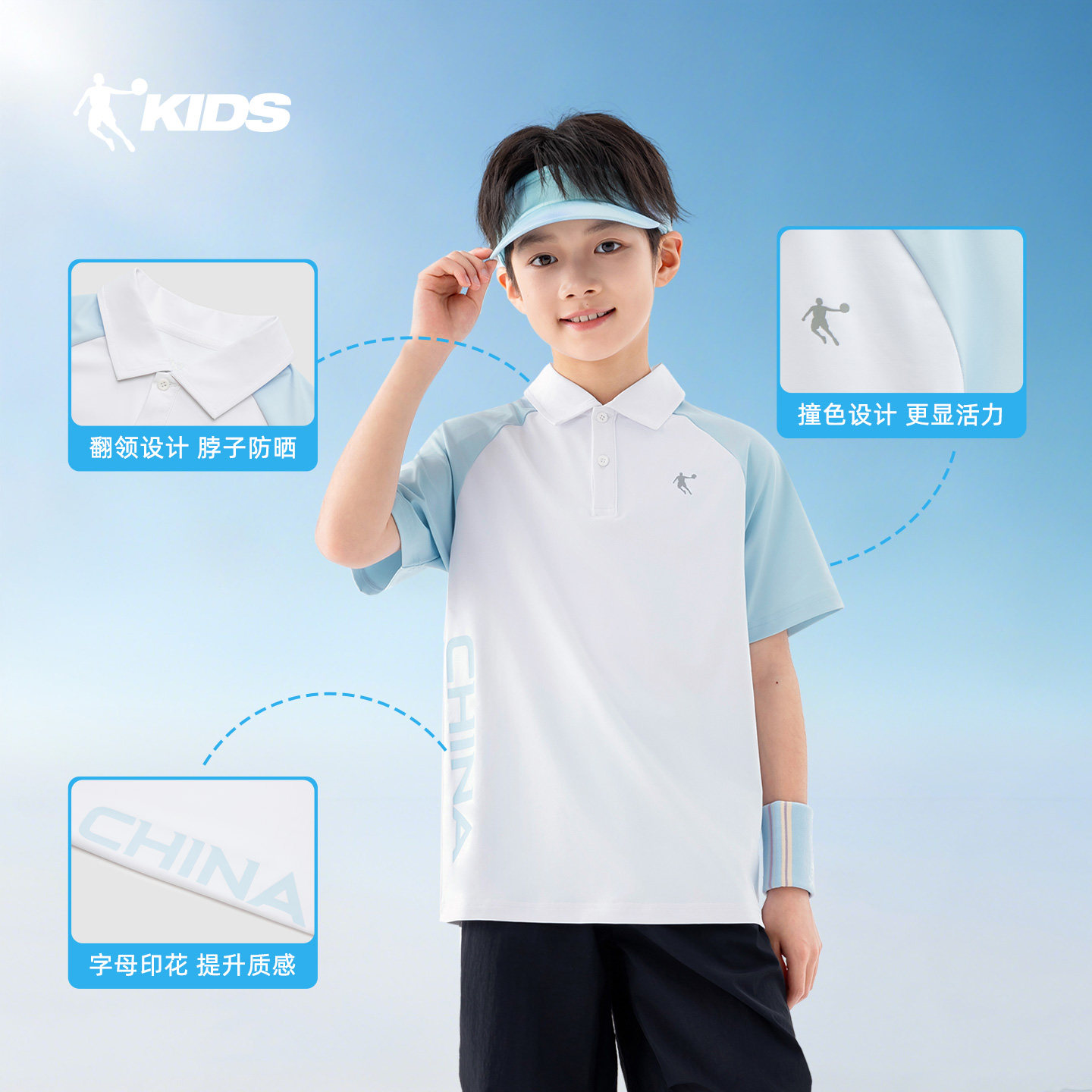 乔丹童装男童短袖polo衫2026夏季透气儿童速干T恤大童运动翻领短t