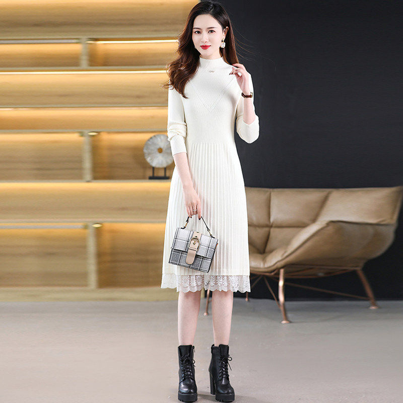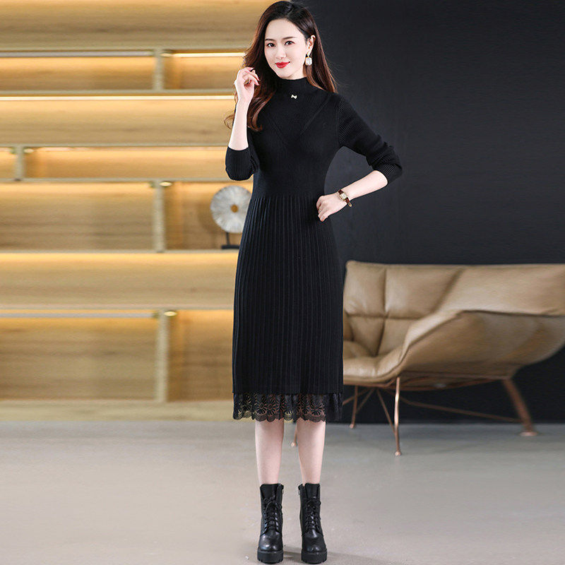 配大衣毛衣裙女秋冬2025新款半高领打底裙内搭显瘦针织羊毛连衣裙