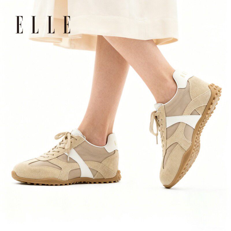 ELLE德训鞋女2026新款复古阿甘鞋轻便百搭休闲内增高运动鞋春季