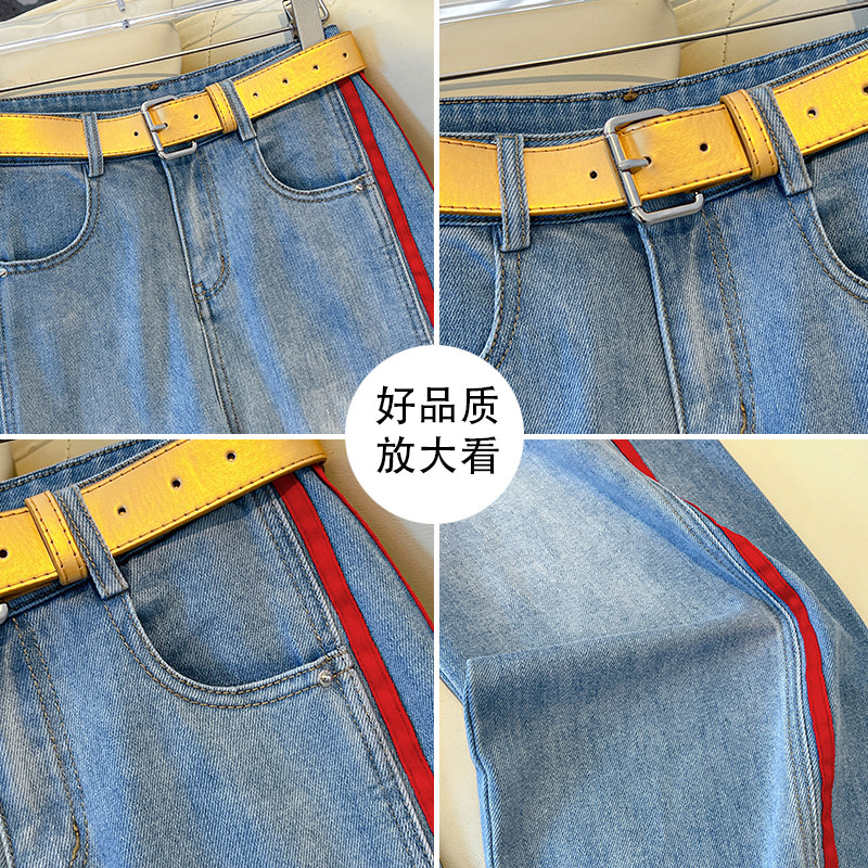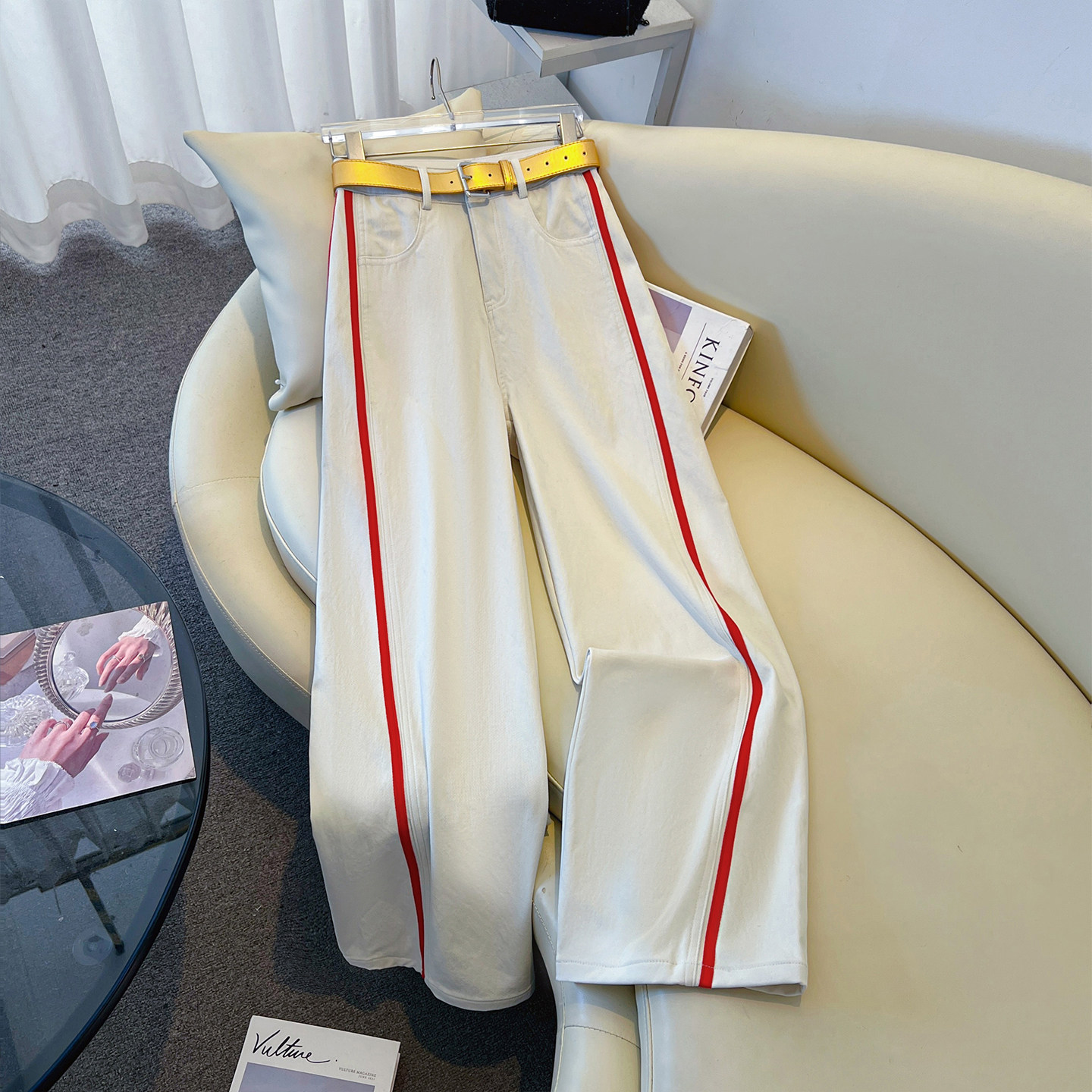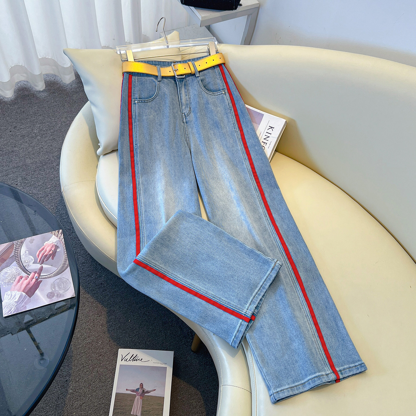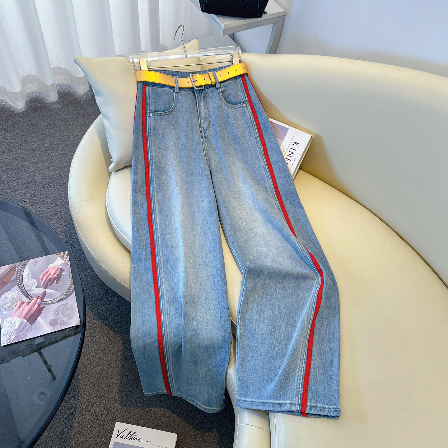 窄版阔腿牛仔裤女款2026春秋新款撞色高腰显瘦宽松直筒拖地长裤子