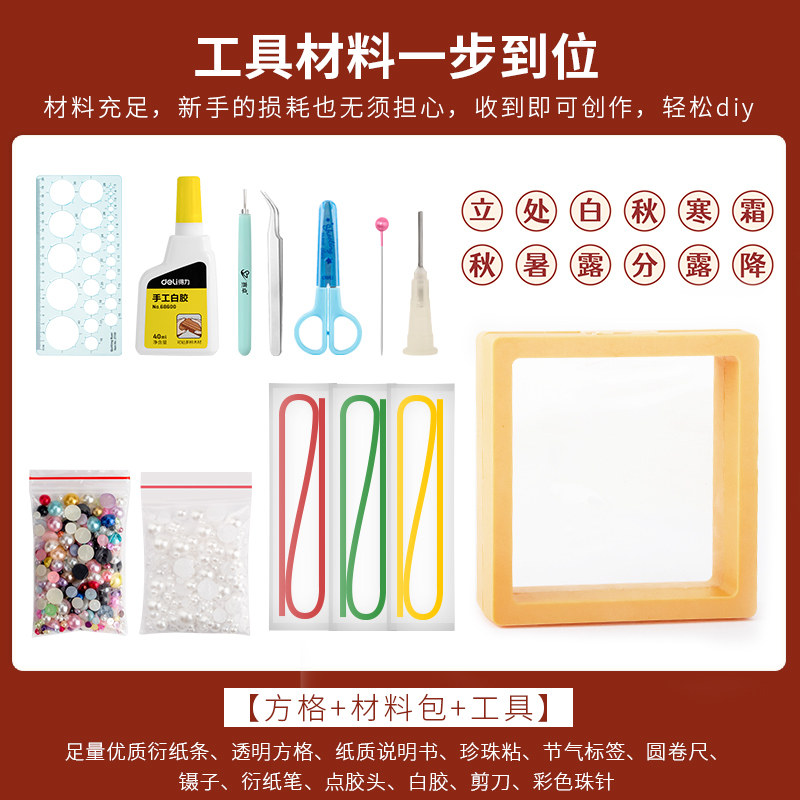 赛卓24节气中国传统节日衍纸画材料包儿童小学生手工diy寒露处暑社团课活动衍纸作品成品定制