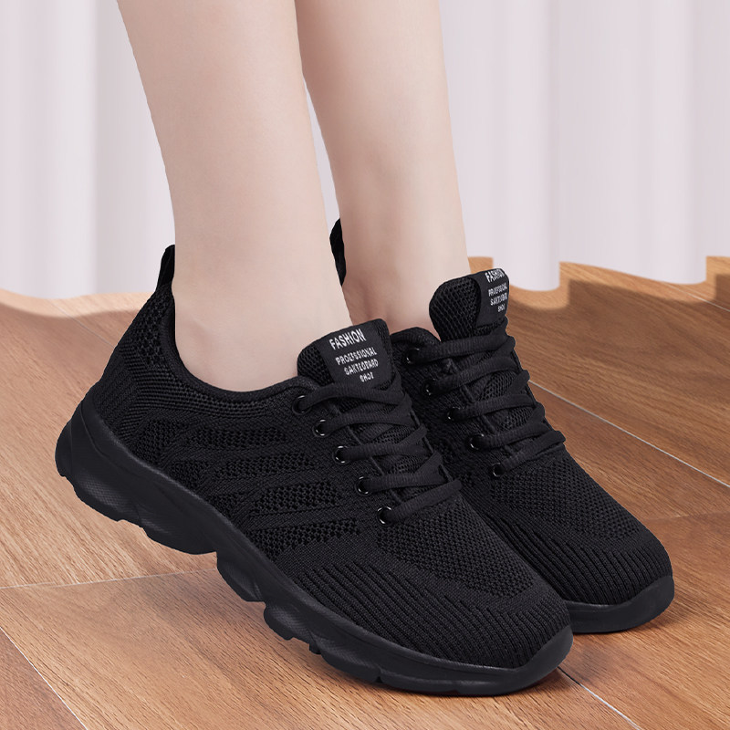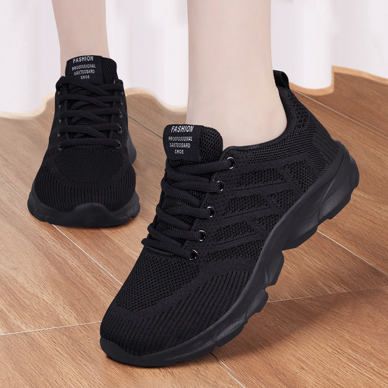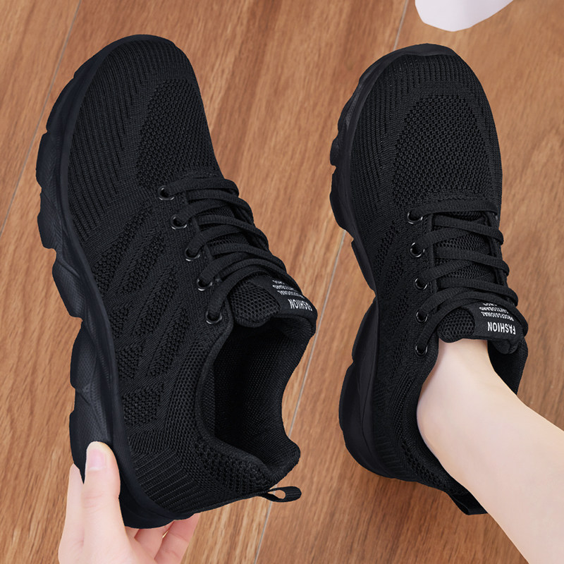 厨房防滑鞋女2026新款黑工作鞋不累脚休闲软底透气上班运动妈妈鞋