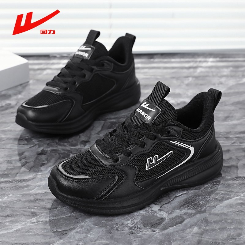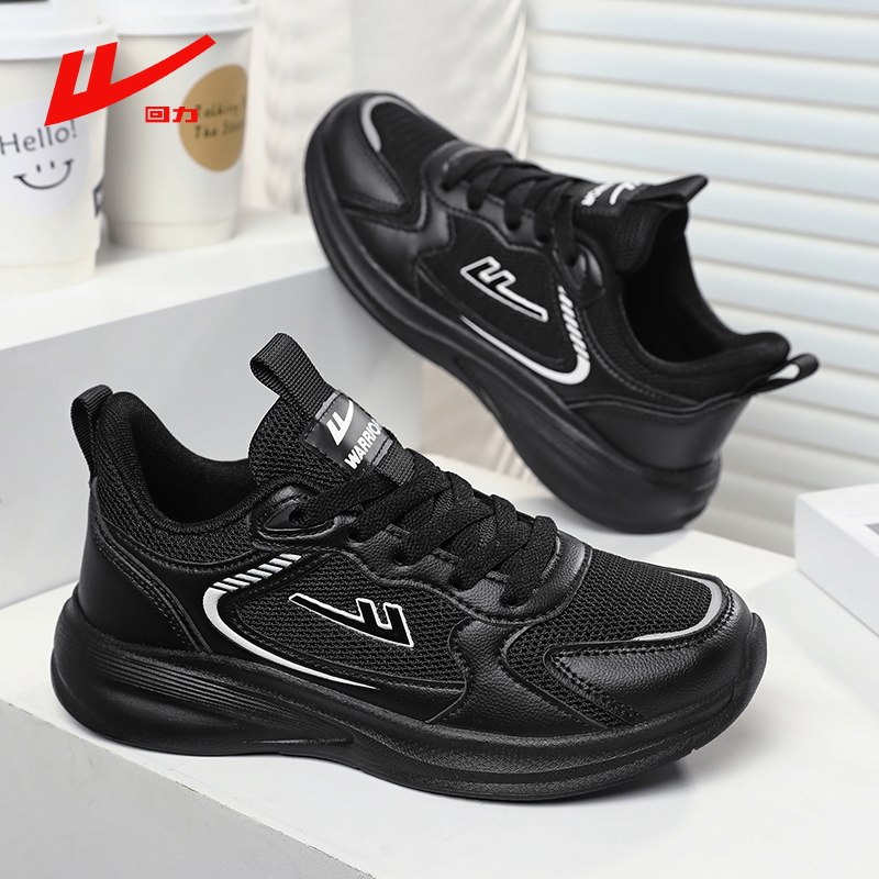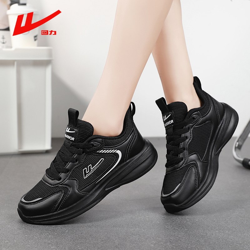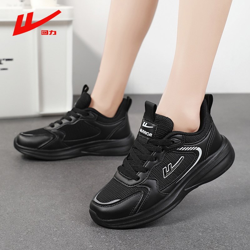 回力女鞋踩屎感休闲运动网鞋春秋透气全黑色软底不累脚上班工作鞋