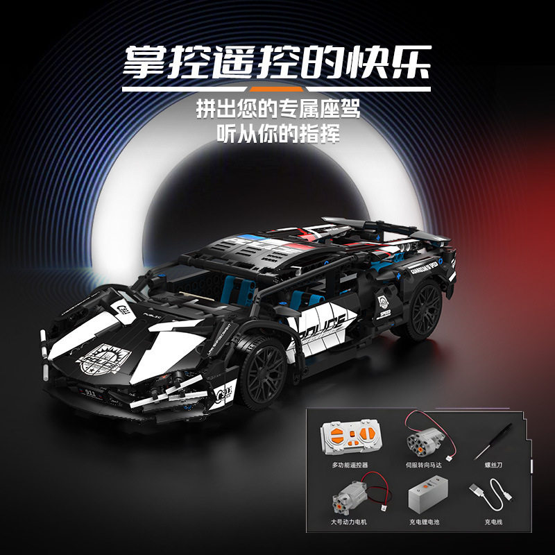 兼容乐高赛道版GT3蓝博跑车基尼遥控积木玩具汽车赛车拼装模型