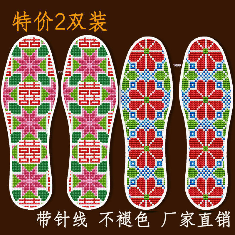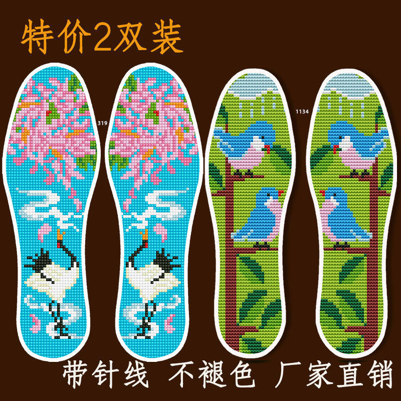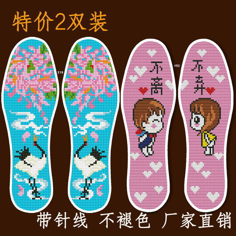 十字绣鞋垫新款自己绣情侣简单易绣刺绣带针线半成品脚踏好运平安