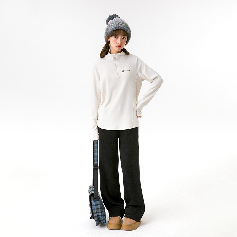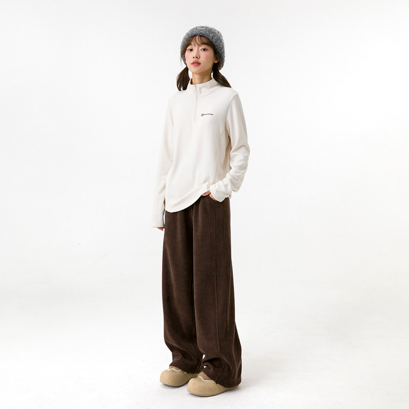诺诺公主S1N初中生加绒阔腿裤女冬季保暖直筒雪尼尔百搭直筒裤子
