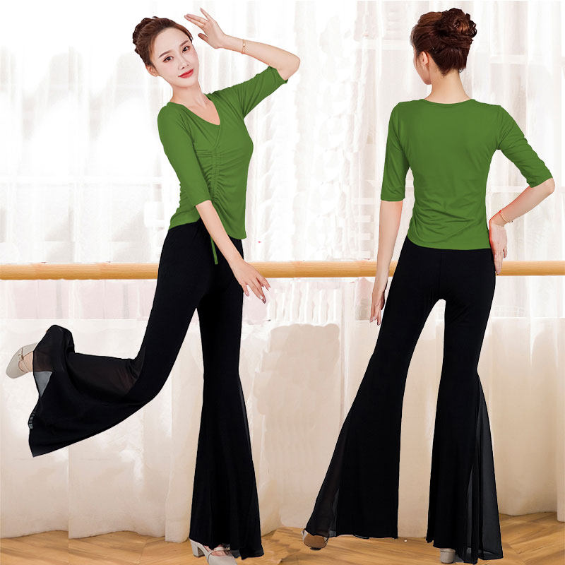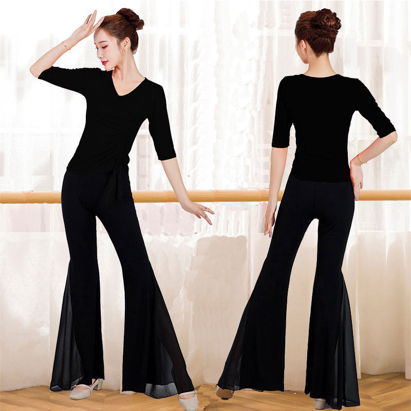 形体服舞蹈训练功服套装女成人黑色现代舞蹈芭蕾走秀微喇裤礼仪夏