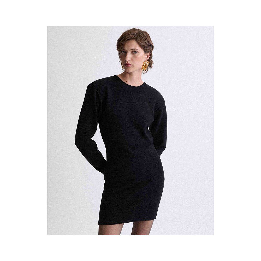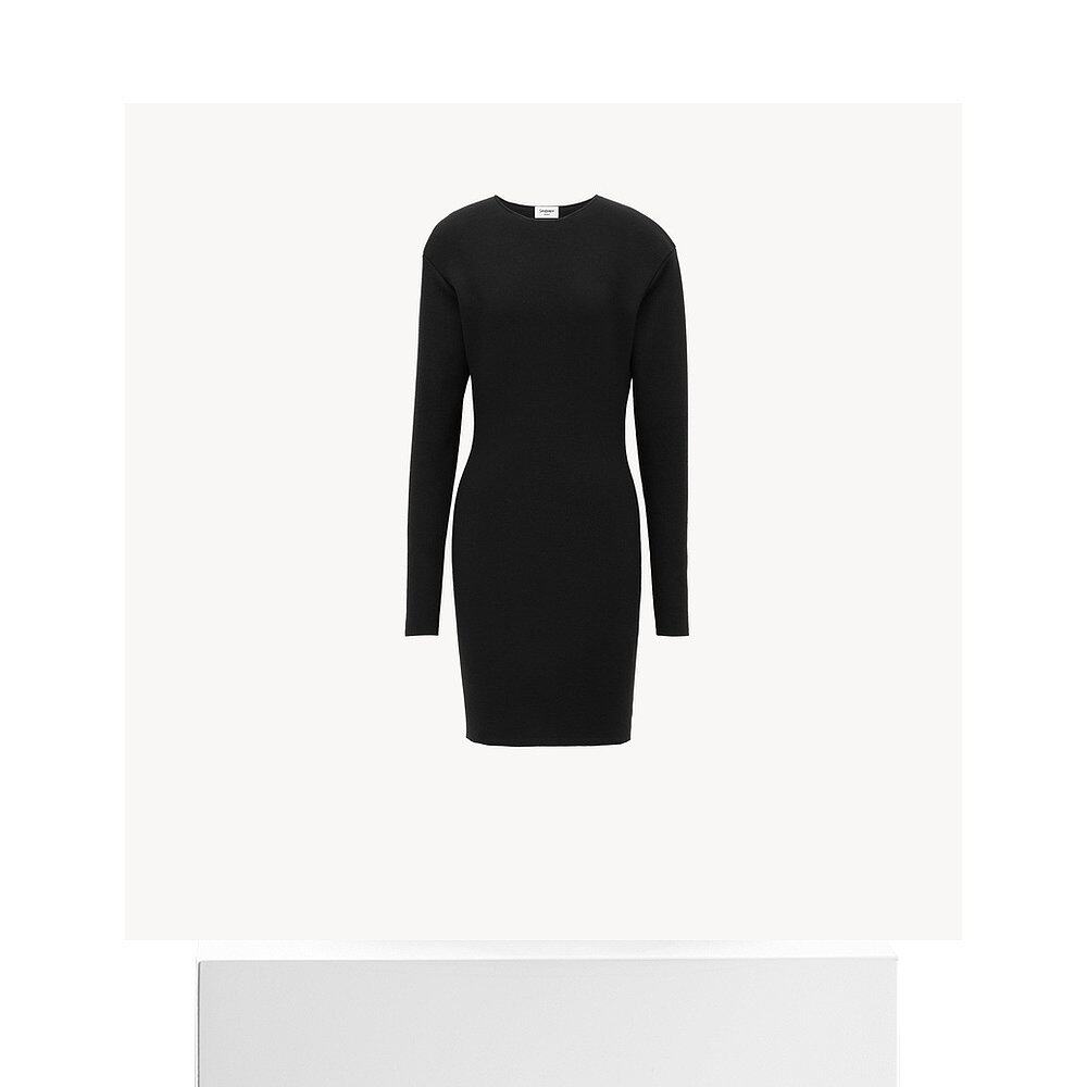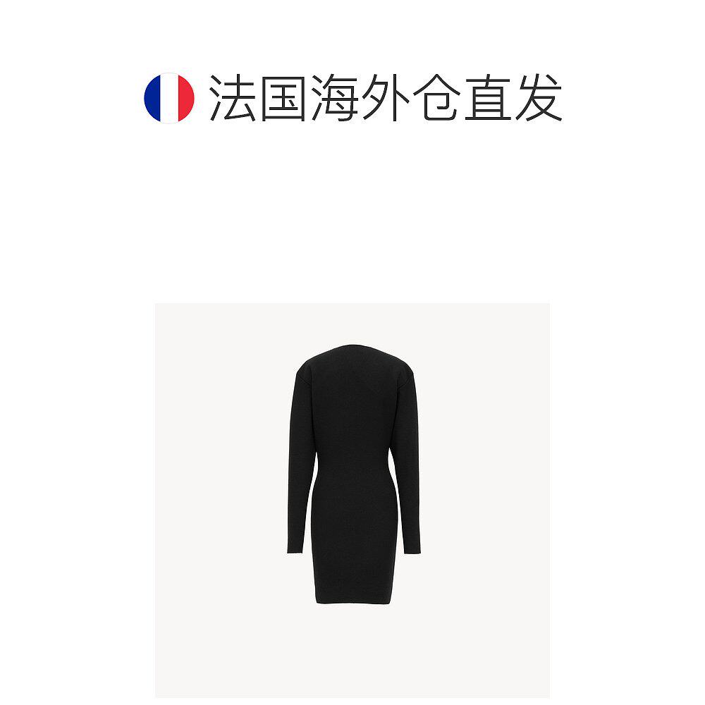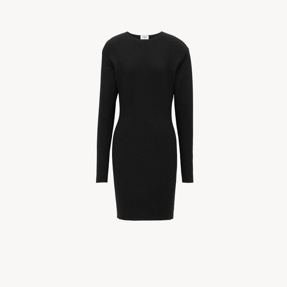 自营欧洲直邮YSL圣罗兰 女士黑色羊毛圆领长袖连衣裙短款毛衣裙