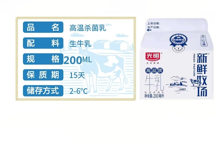光明新鲜牧场鲜牛奶优质营养原味200毫升冷藏食品整件顺丰包邮