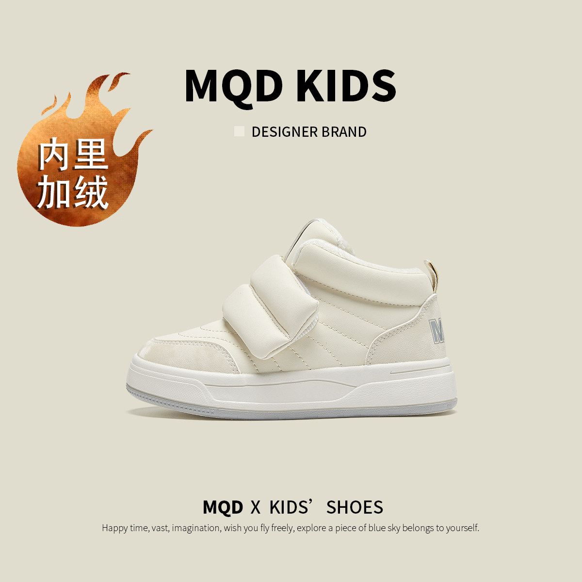 MQD马骑顿童鞋冬季女童板鞋加绒加厚儿童二棉鞋保暖运动鞋高帮男