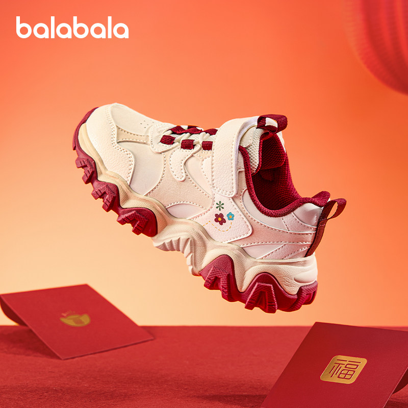 巴拉巴拉儿童运动鞋女童跑步鞋大童鞋子新年2026春季新款童鞋红色