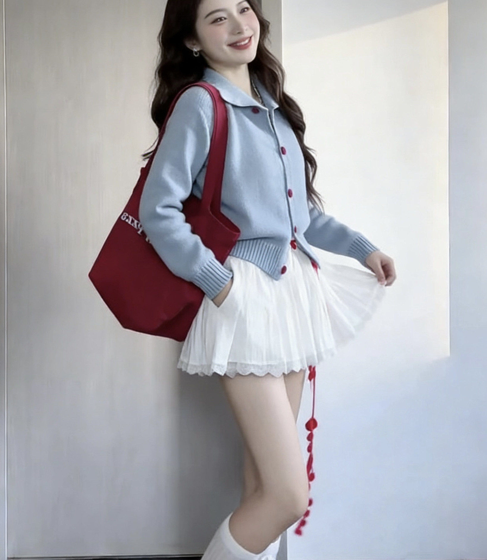 巨好看白色半身连衣裙女秋冬2026新款韩系早春季穿搭一整套装短裙