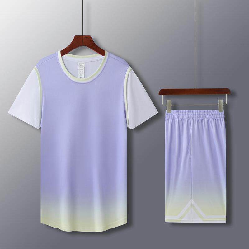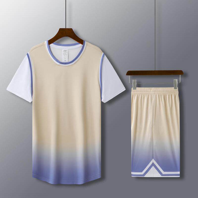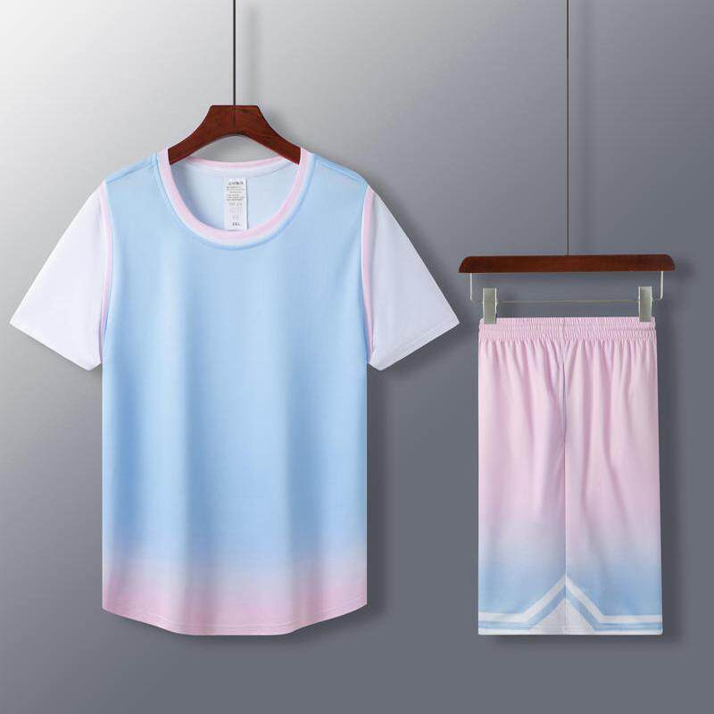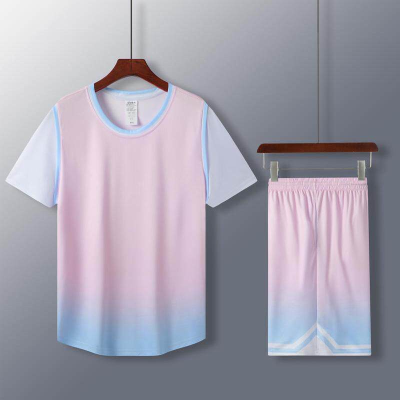 渐变色男女款运动篮球服套装有袖定制比赛训练营队服支持印制儿童