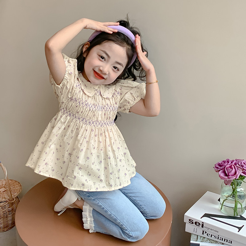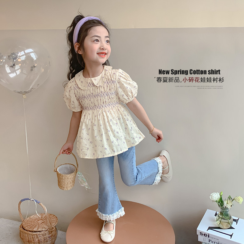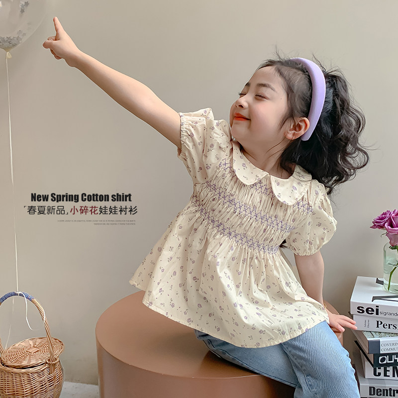 女童衬衫春秋2026新款洋气女孩春装衬衣时髦春季儿童碎花短袖上衣