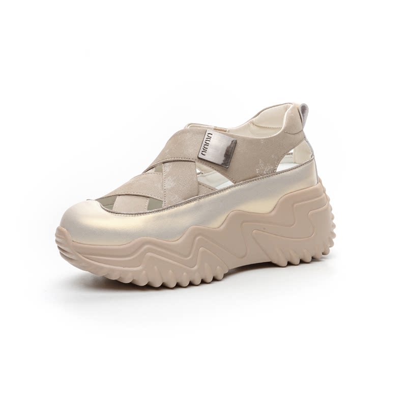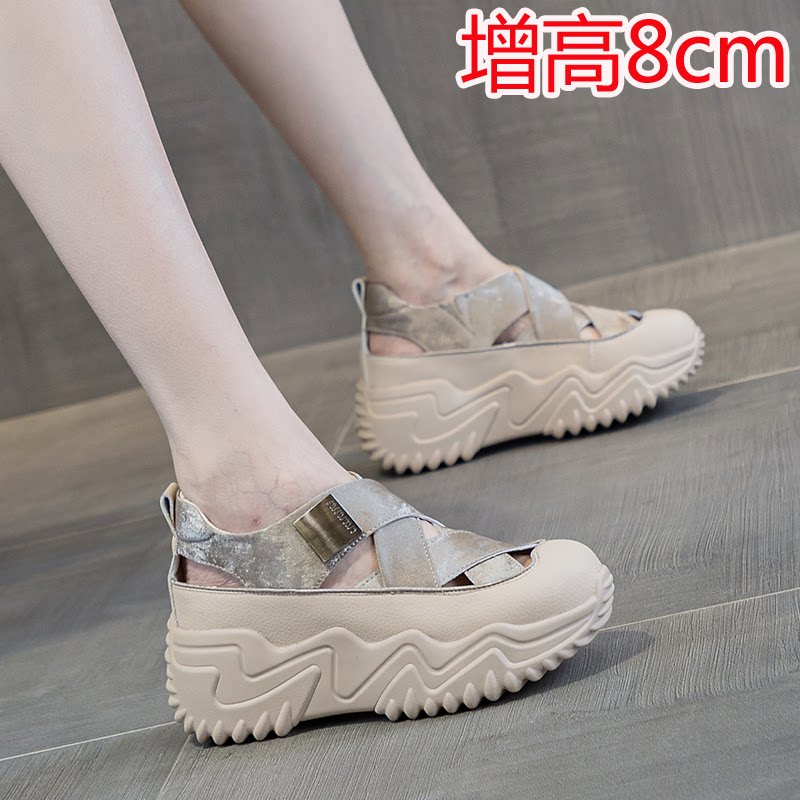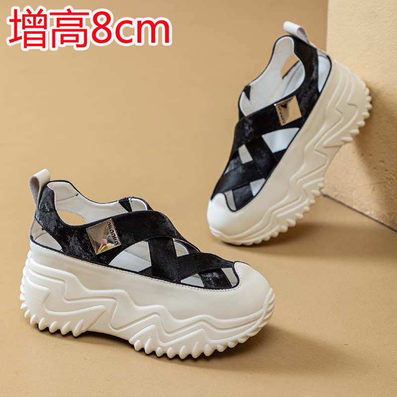 镂空透气老爹鞋女内增高8cm小个子夏季休闲运动鞋厚底包头凉鞋33