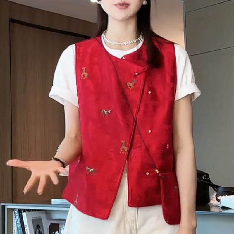 新中式国风红色女款2026早春季新款圆领无袖时尚百搭背心上衣