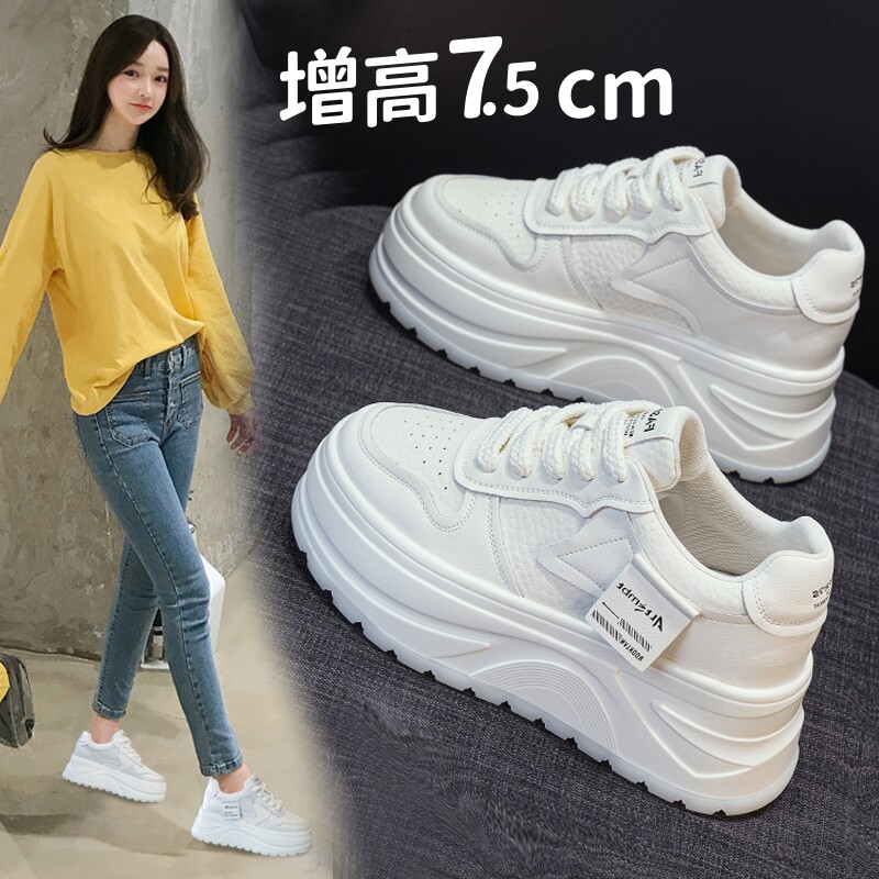 小个子真皮内增高小白鞋女松糕厚底系带低帮单鞋显瘦小码32 33 34