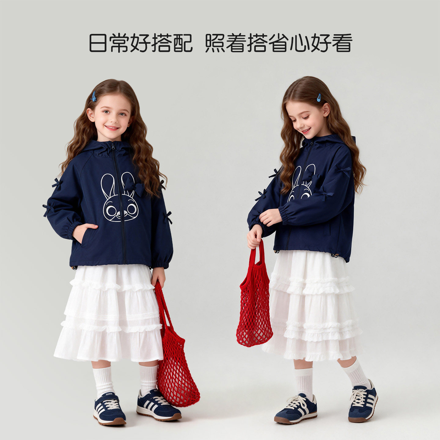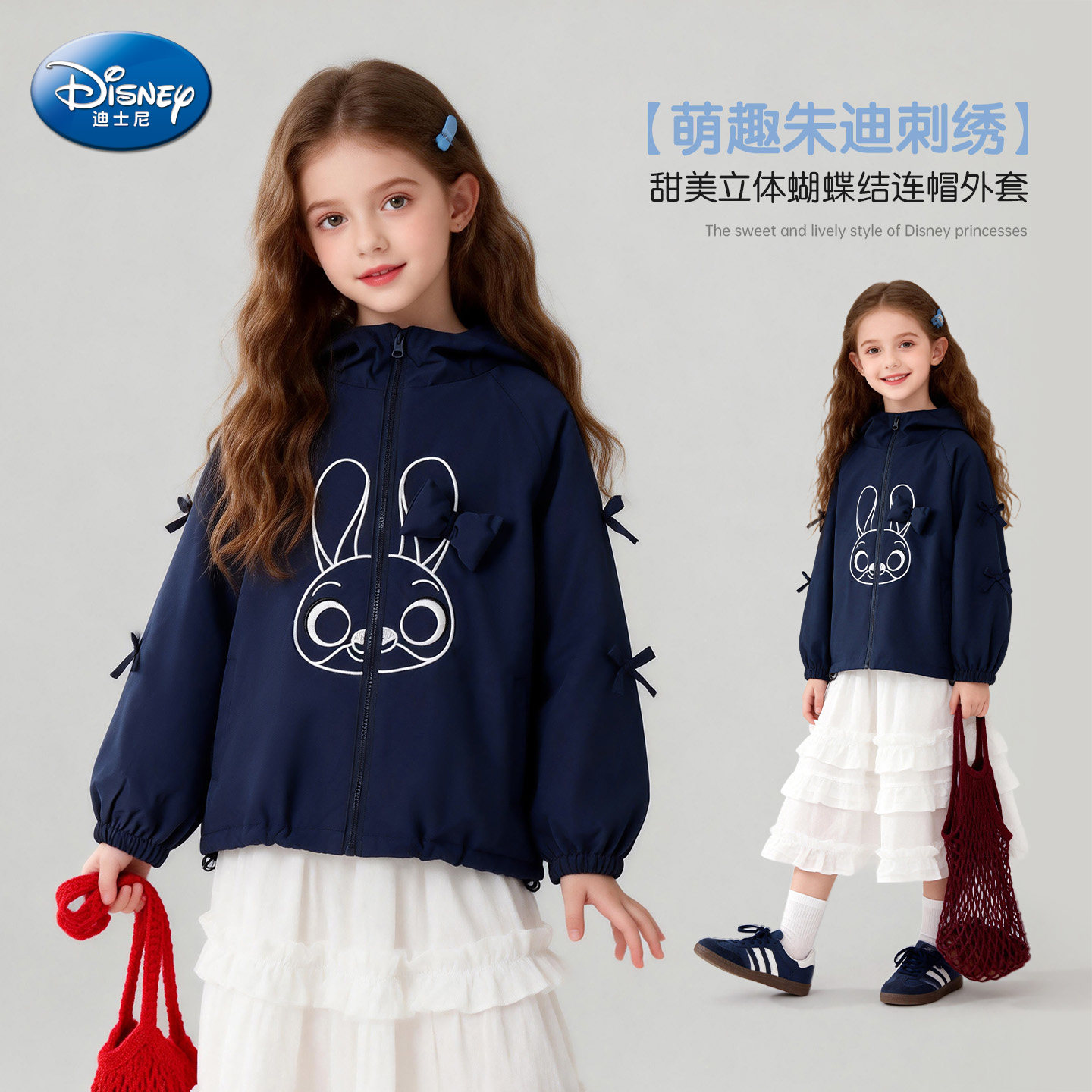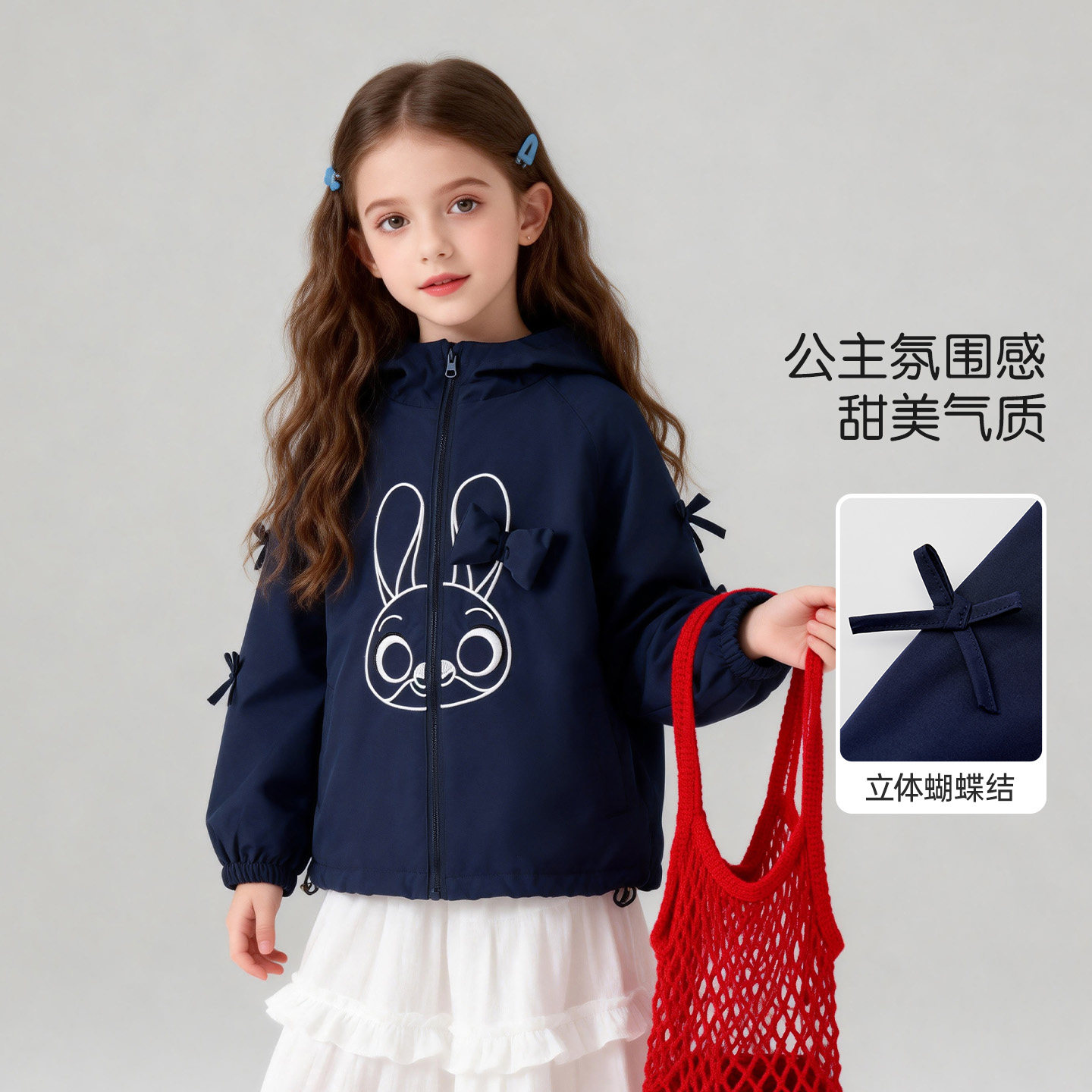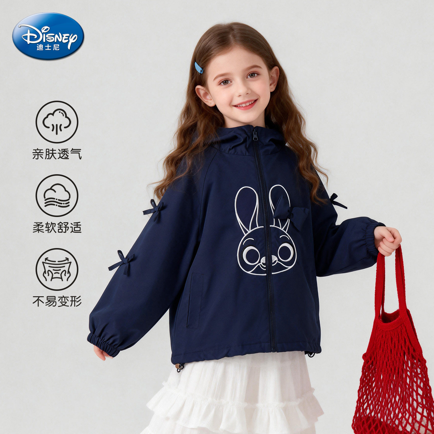 迪士尼女童春装外套2026新款儿童防风外套小女孩兔子警官连帽上衣