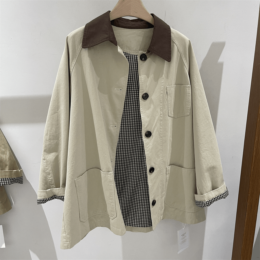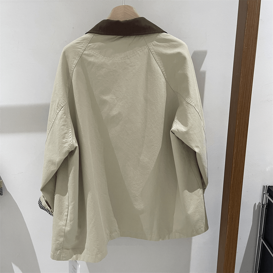 韩国休闲风衣外套女单排扣小个子2026春装新款高级感撞色领子上衣
