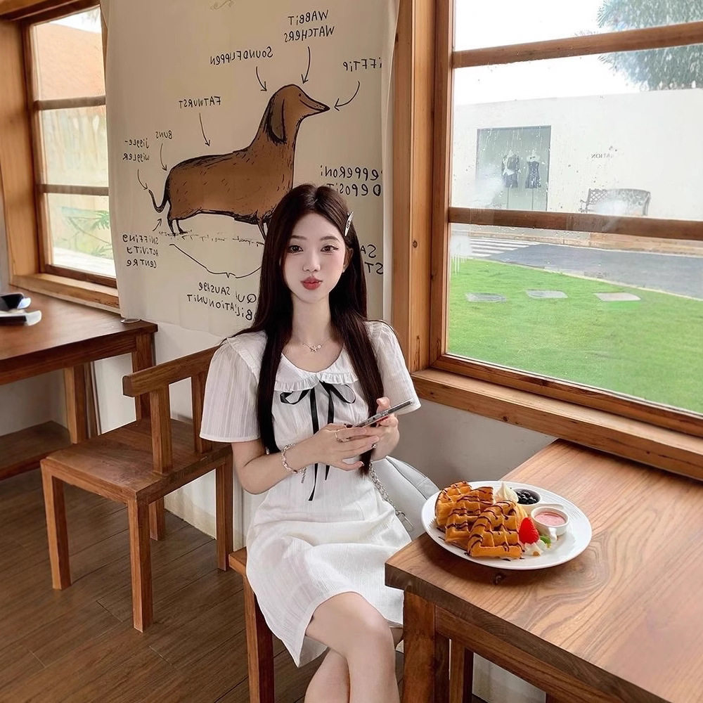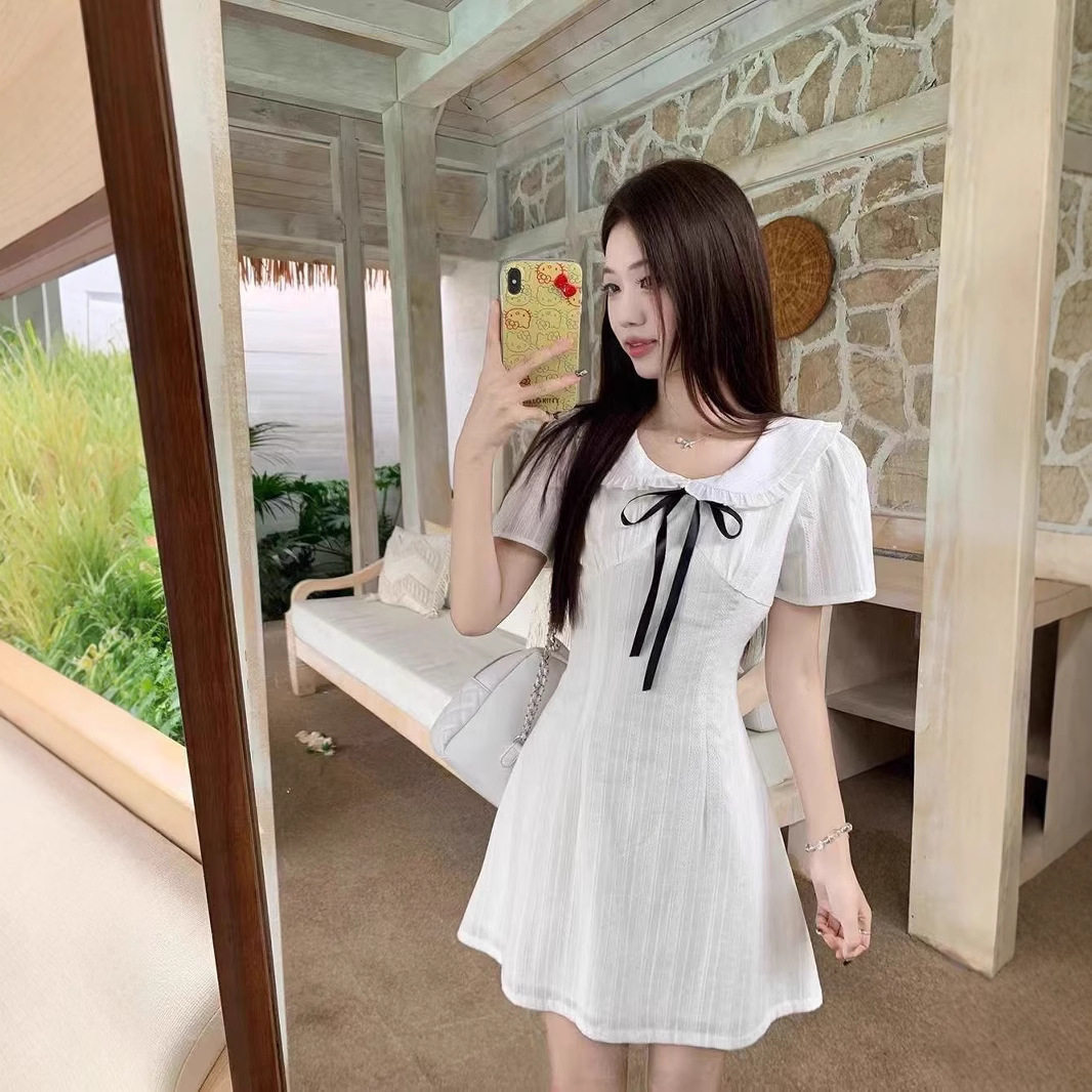 独特漂亮掐腰白色连衣裙子女装初夏穿搭2026新款今年流行爆款长裙