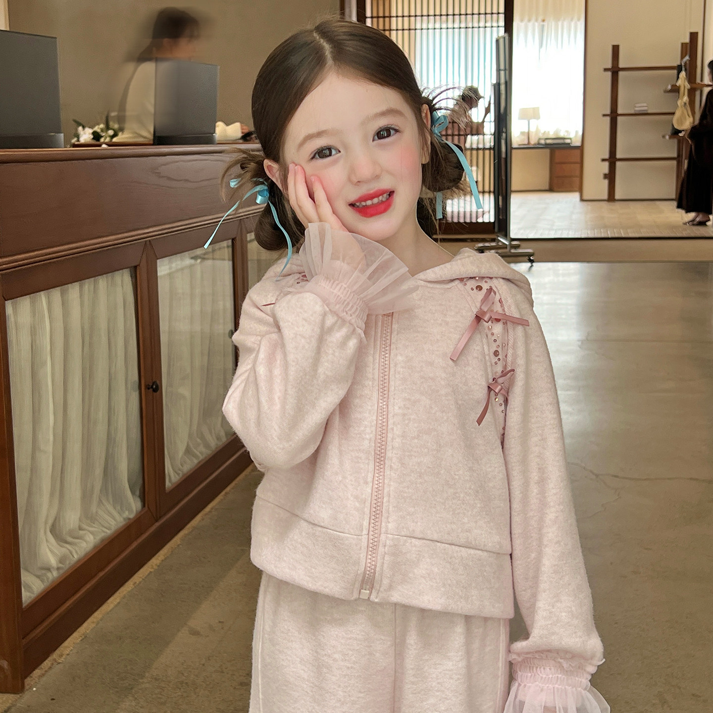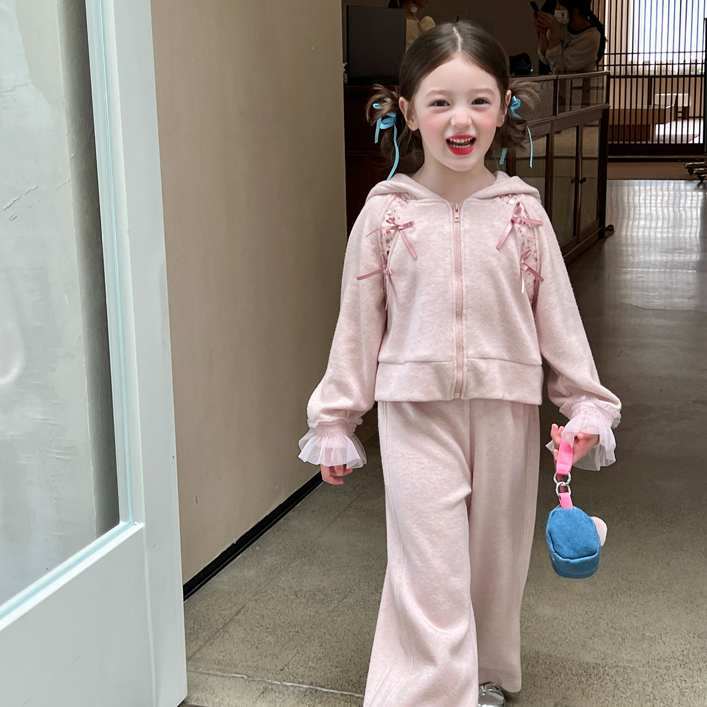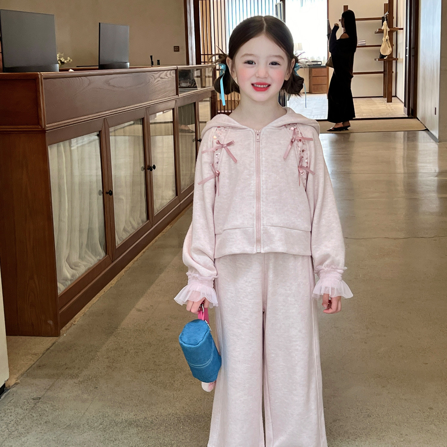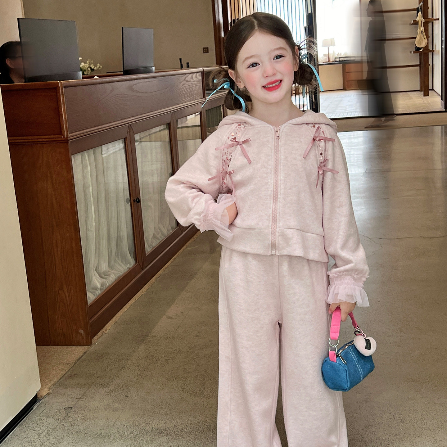 栀了成长记童装女童卫衣套装秋冬新款儿童女宝宝休闲加绒连帽衣服
