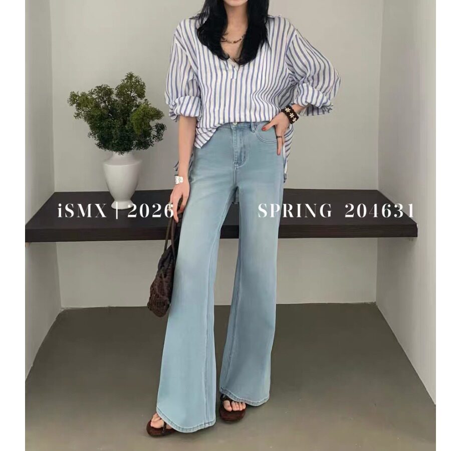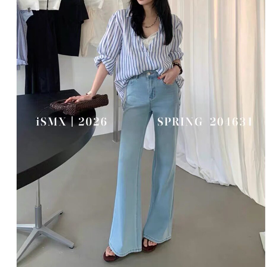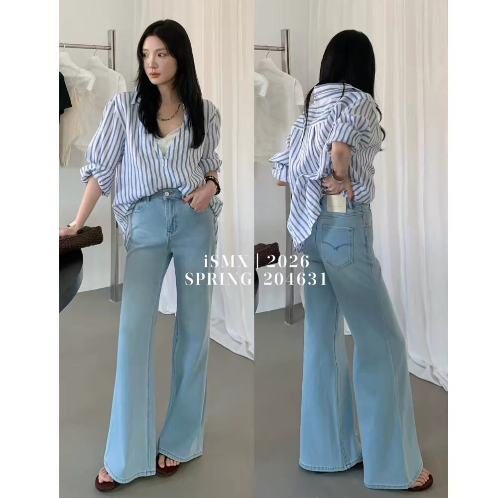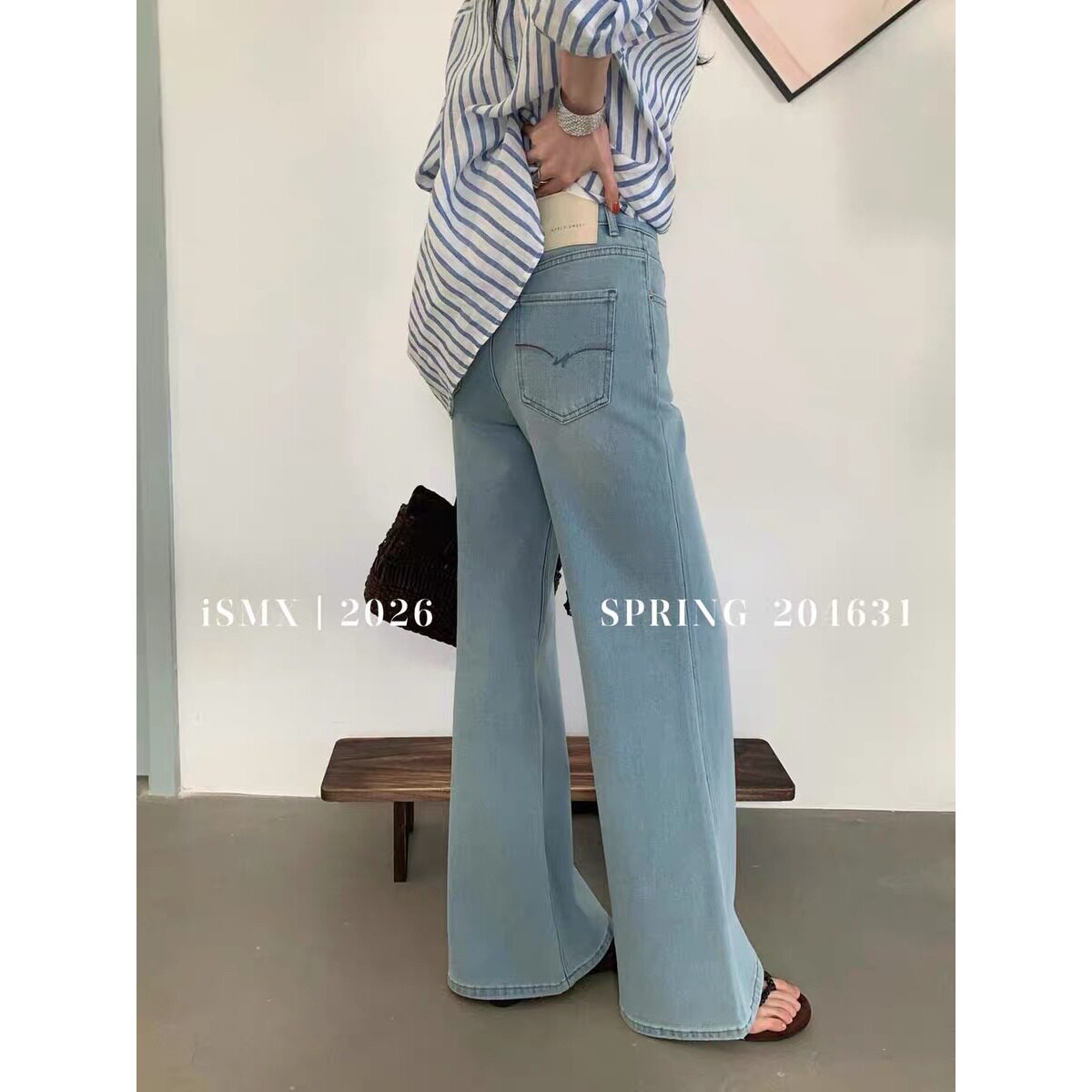 2026新款春夏口袋立体浅色系直筒微喇裤高级百搭牛仔裤女喇叭长裤