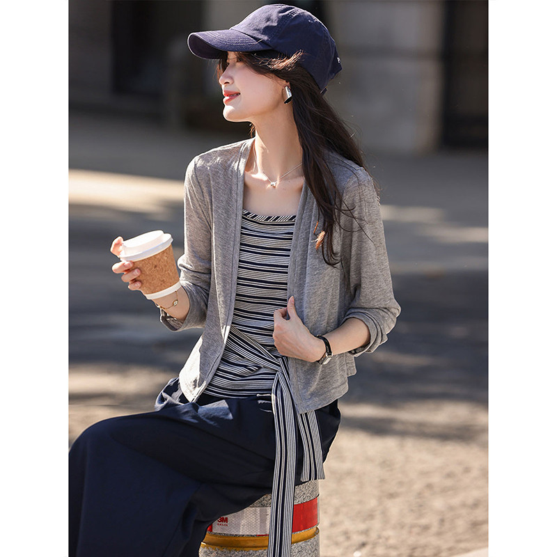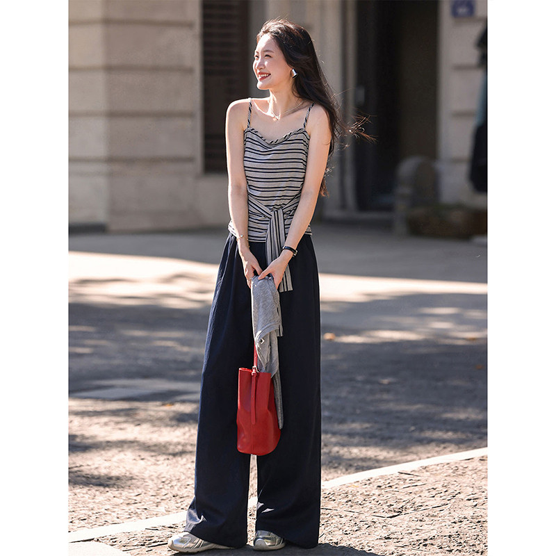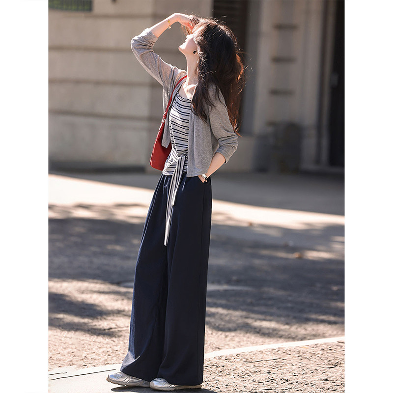 2026春季新款针织开衫条纹吊带长裤三件套装女早春独特漂亮一整套