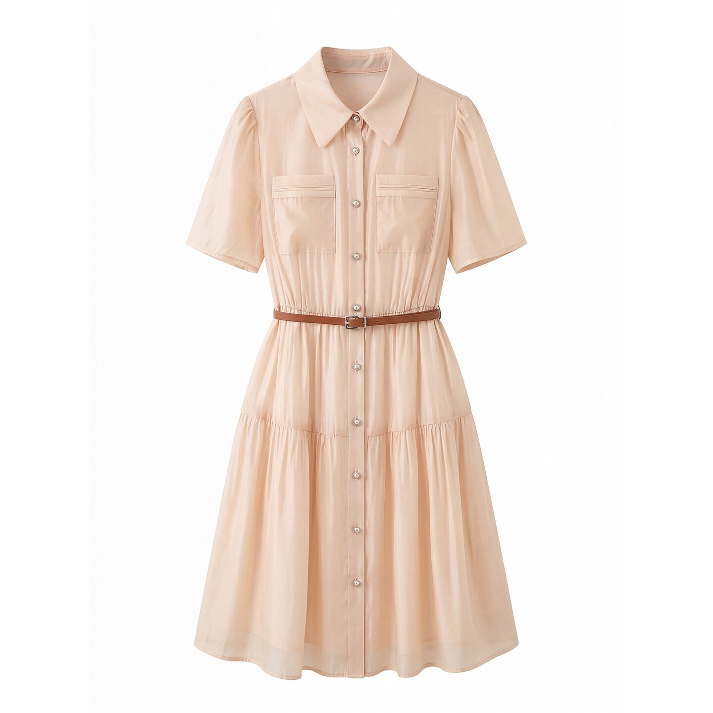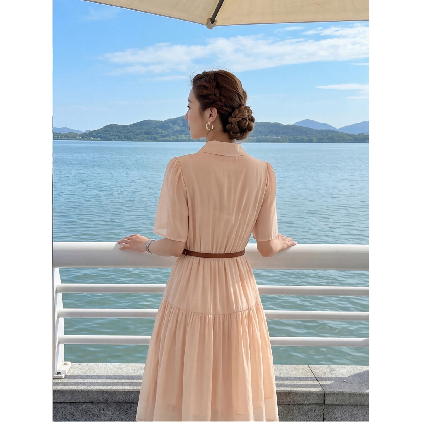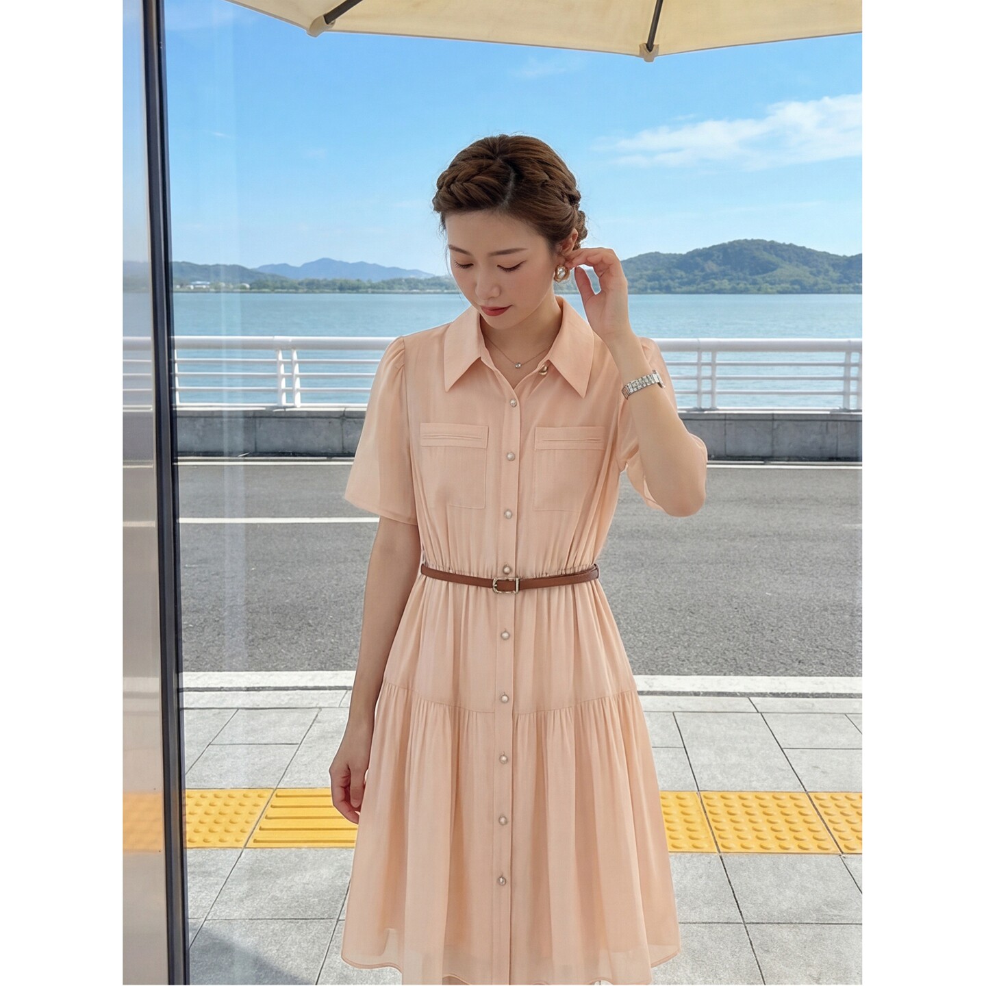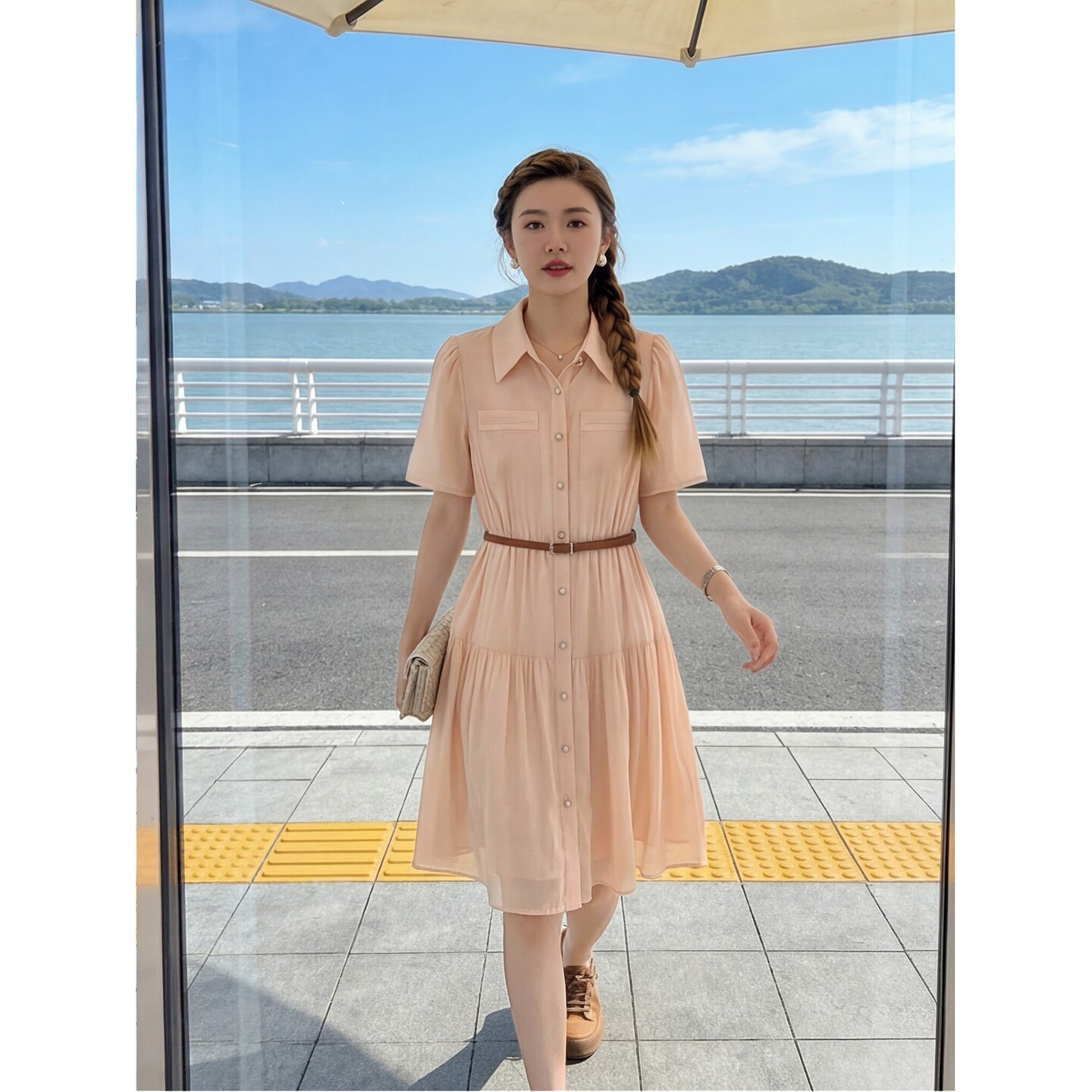 奢华2026夏季新款显瘦休闲韩版小个子穿搭高端精致粉色短袖连衣裙