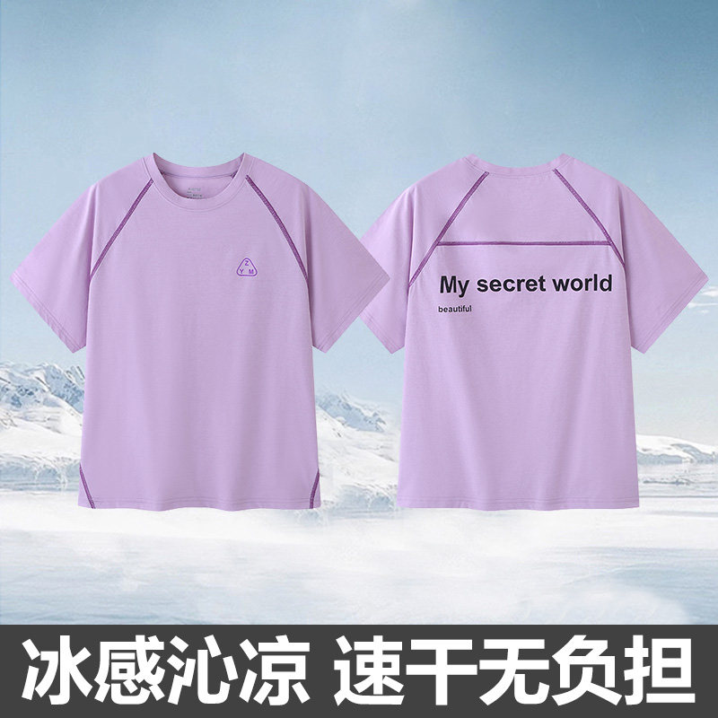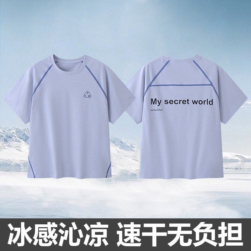 青少年透气运动T恤男女生儿童冰丝夏季款男童短袖男孩休闲速干衣9