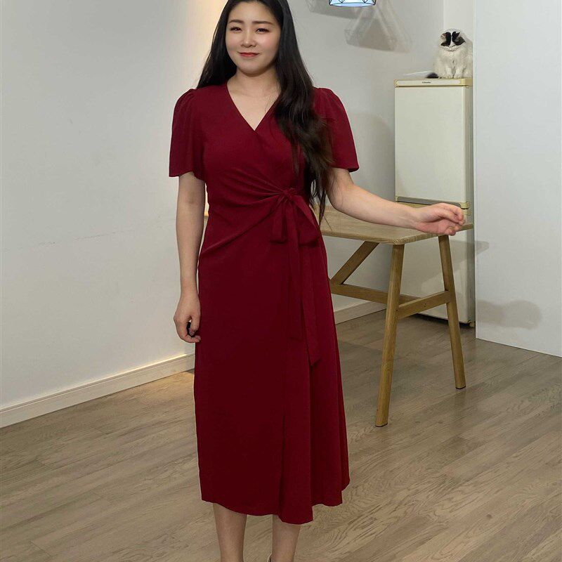 大码女装连衣裙女胖MM夏装孕妇遮肚子巨显瘦妈妈礼服气质红色长裙