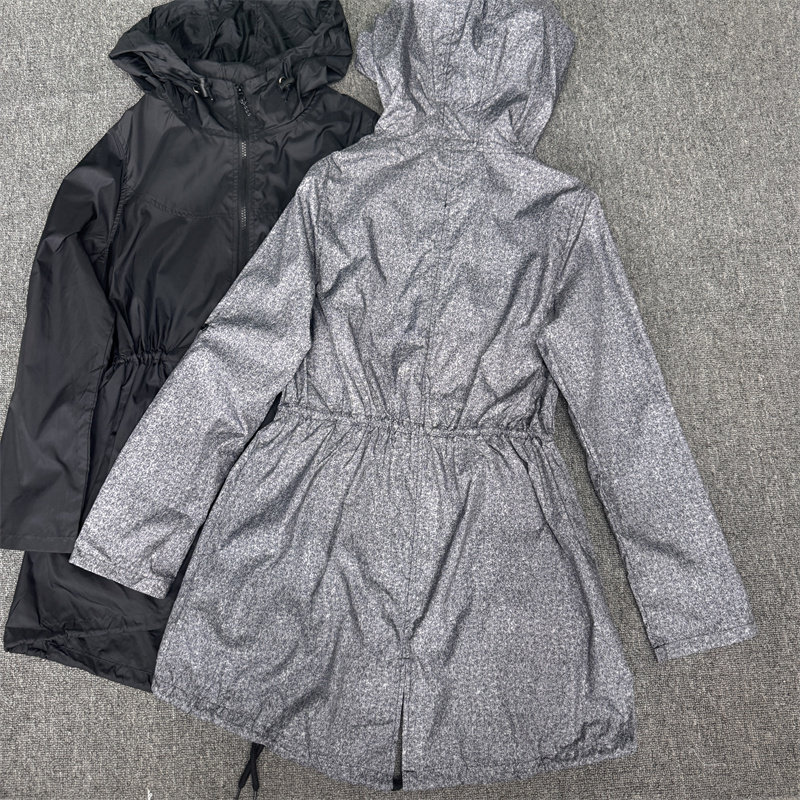 外贸尾货女款春秋季薄款单层中长款连帽外套收腰显瘦百搭女士外套