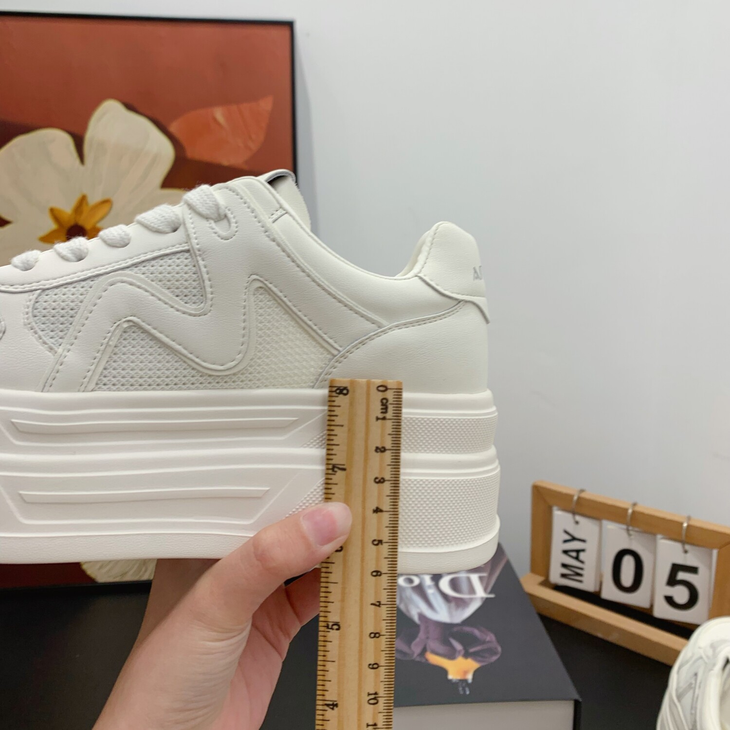 镂空网面透气舒适真皮小白鞋女2026夏季新款小个子6CM厚底松糕鞋