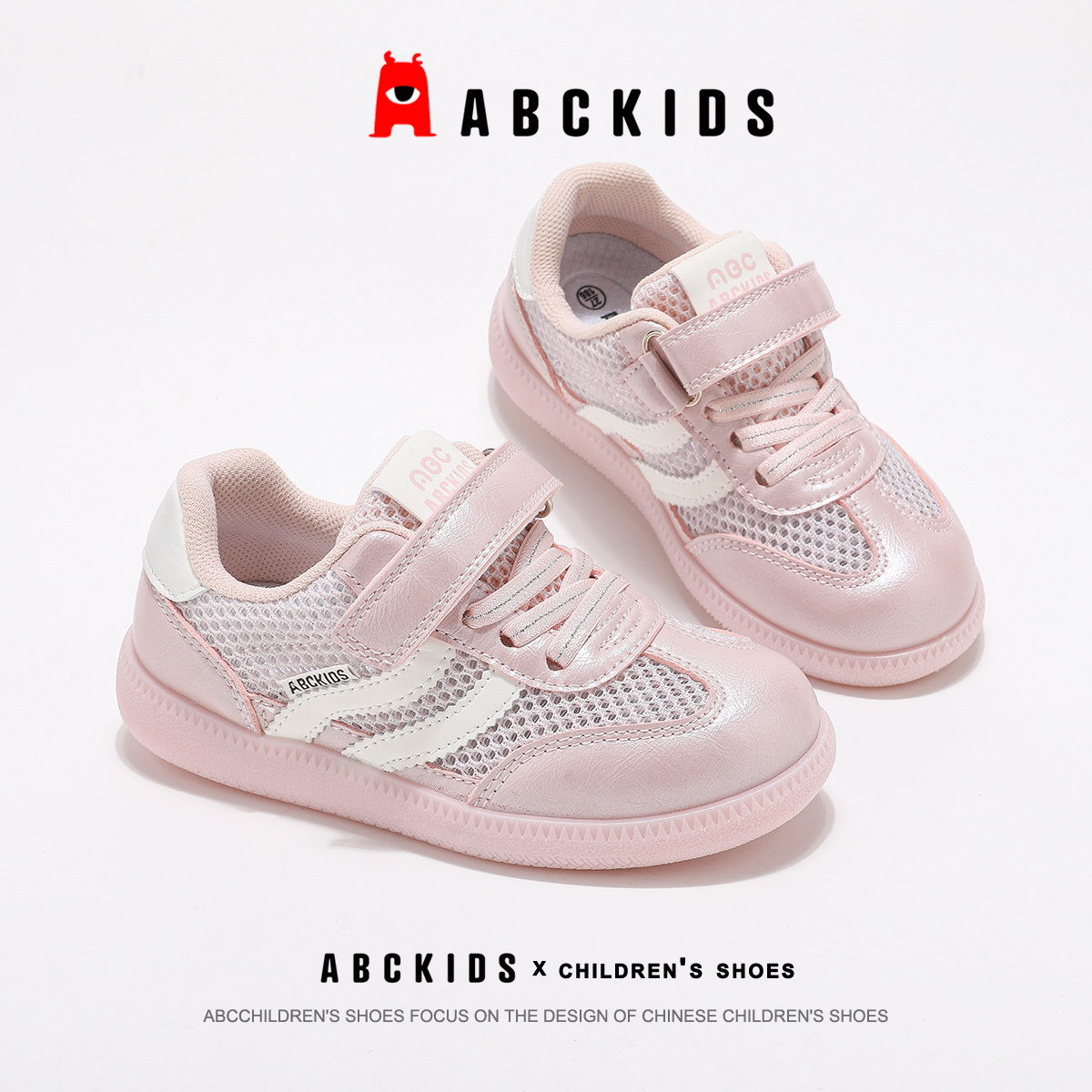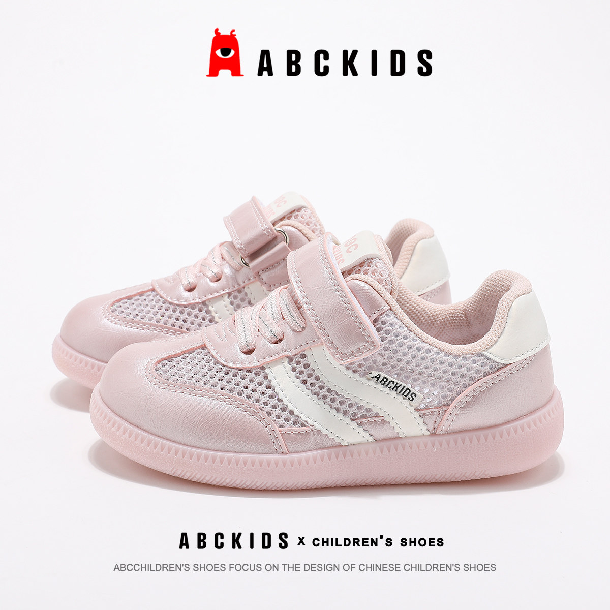 ABCkids童鞋女童网面透气板鞋2025夏季新款儿童运动鞋子德训鞋女