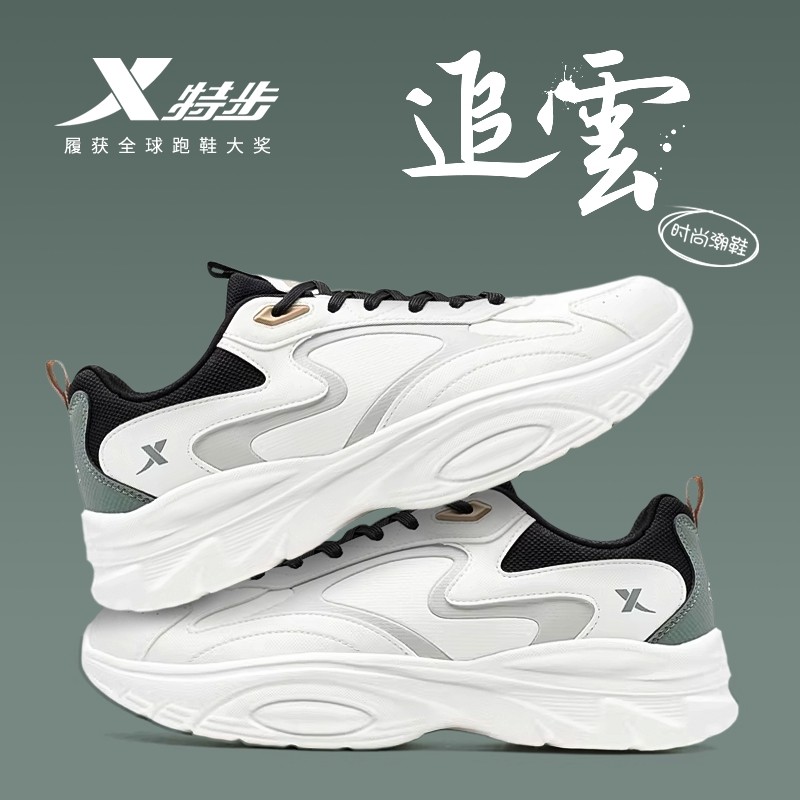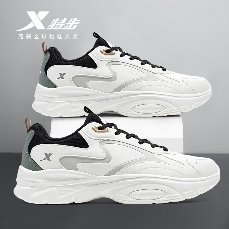 特步男鞋2026春季新款白色运动鞋男青少年初中学生厚底休闲老爹鞋