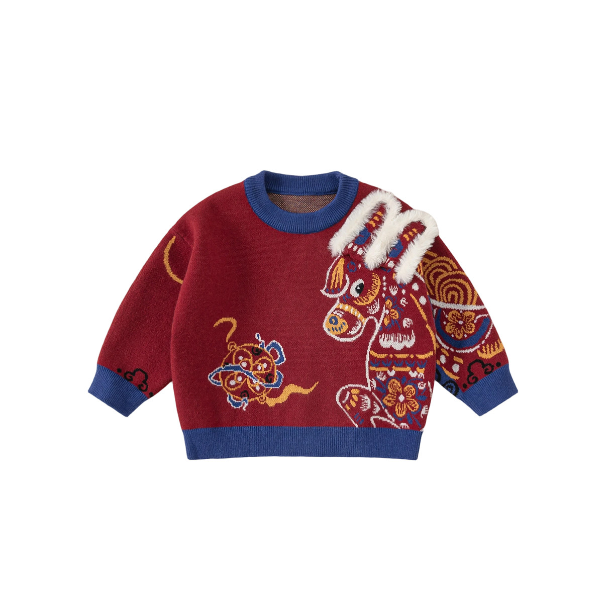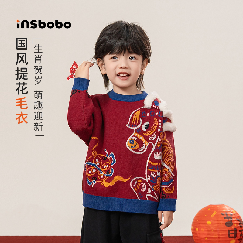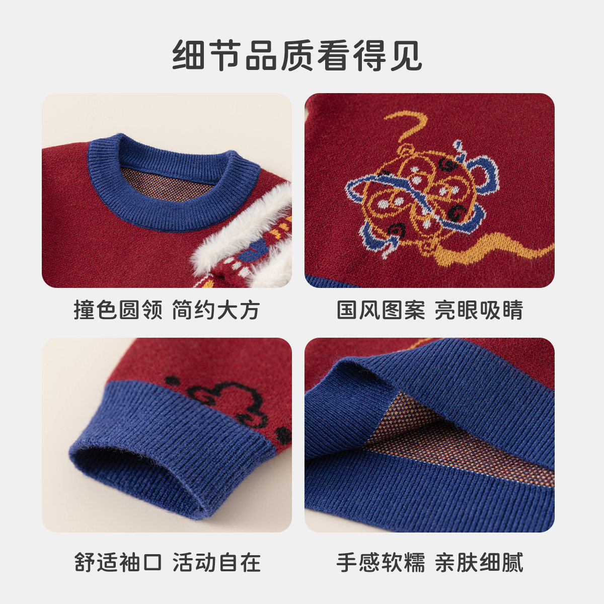 男童毛衣宝宝春装儿童红色周岁衣服男孩中式上衣春季新款喜庆童装
