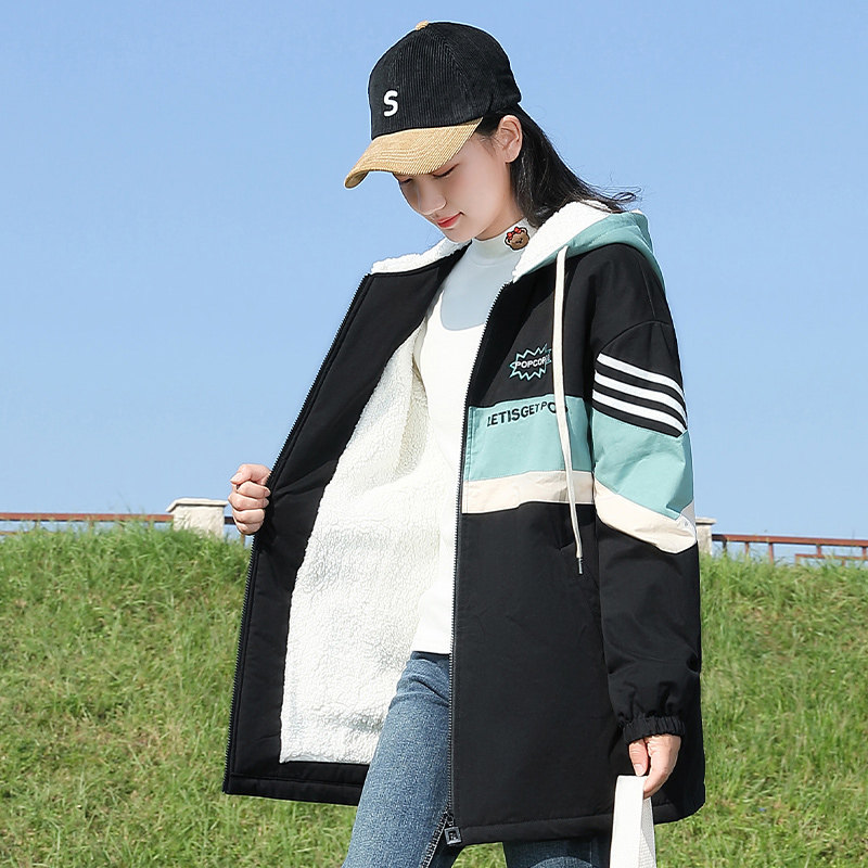 311线报网描述:21602加绒/初中学生外套撞色拼接,宽松版型
