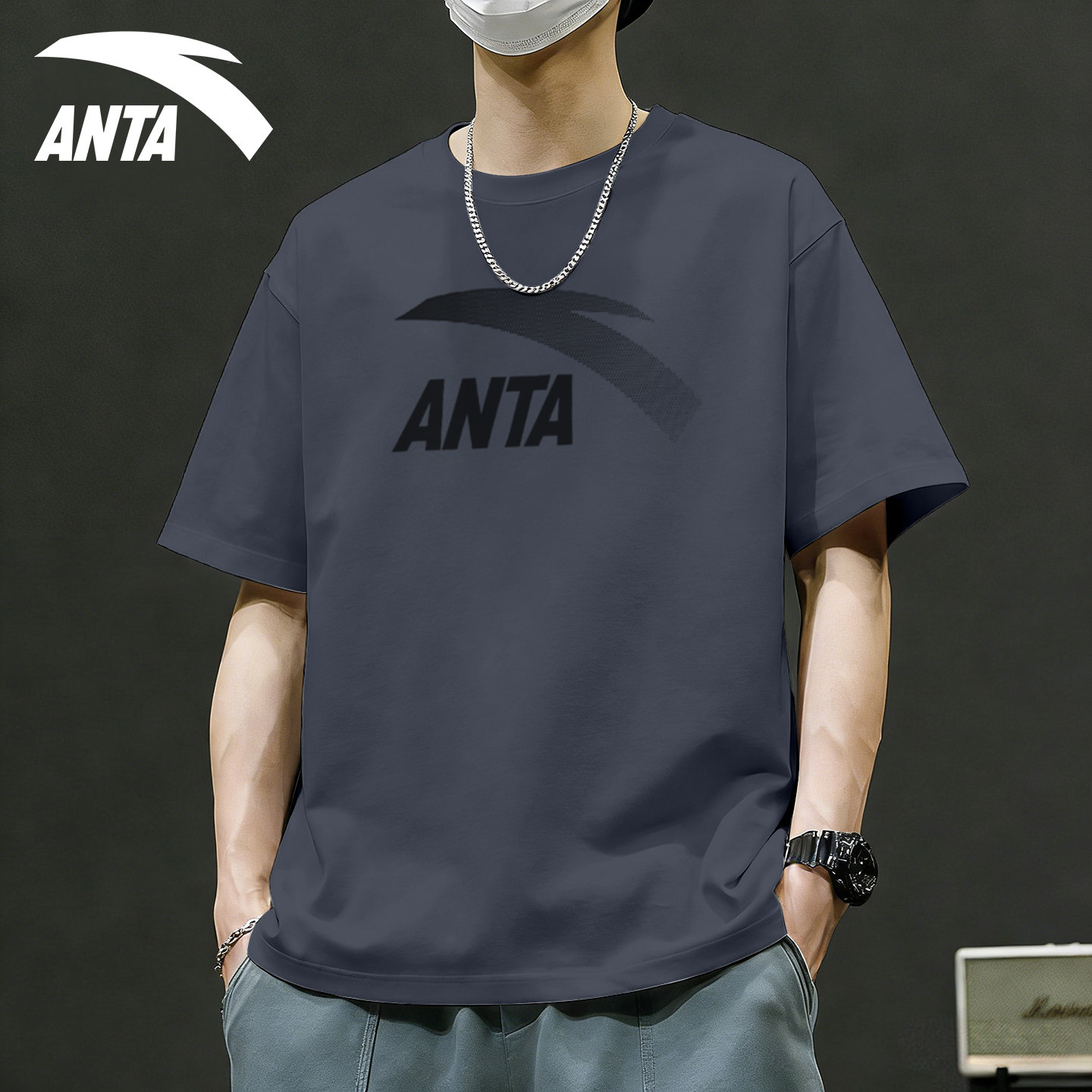 安踏短袖男t恤大码2026夏季新款潮流宽松青少年休闲运动上衣半袖