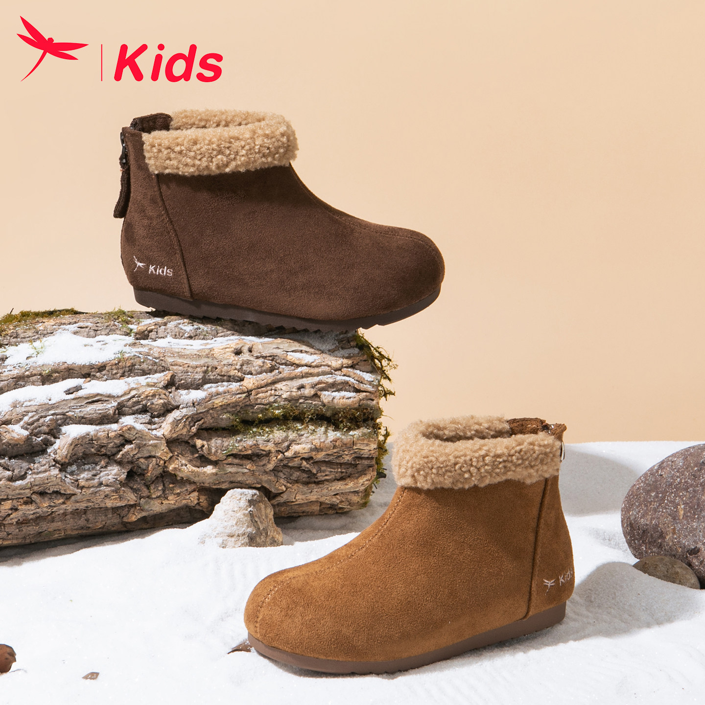 红蜻蜓女童鞋子儿童雪地靴短靴2026新款冬季宝宝棉鞋加绒女孩大童