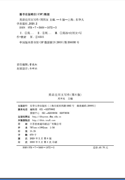 官方正版 英语应用文写作(第六版) 高等学校应用英语系列教材 东华大学出版社 (周邦友)