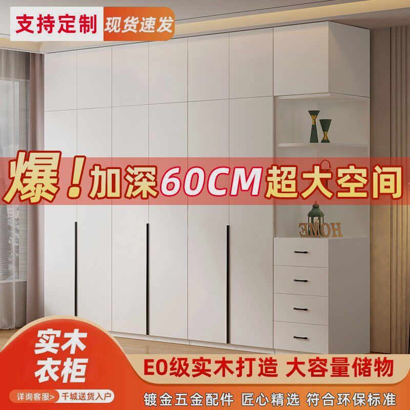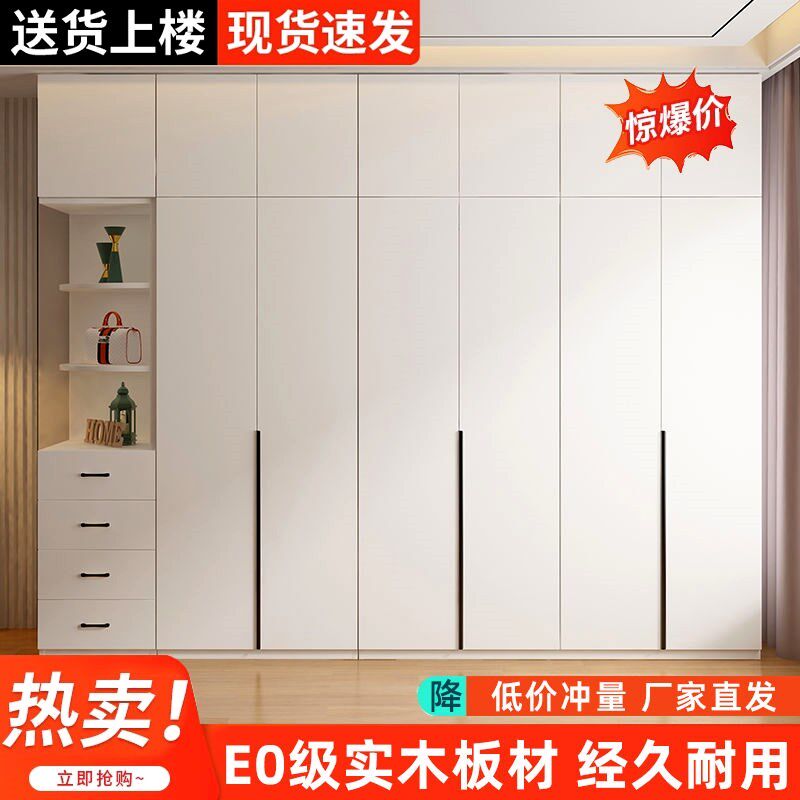 全实木加厚衣柜家用卧室生态板简易一体衣橱组合整体可定制大柜子