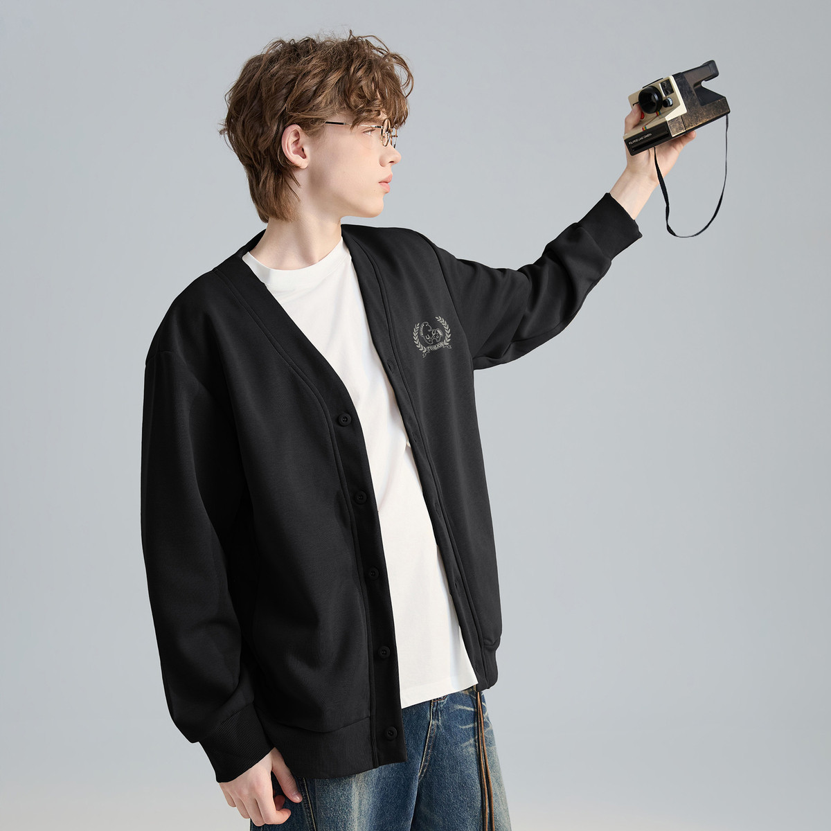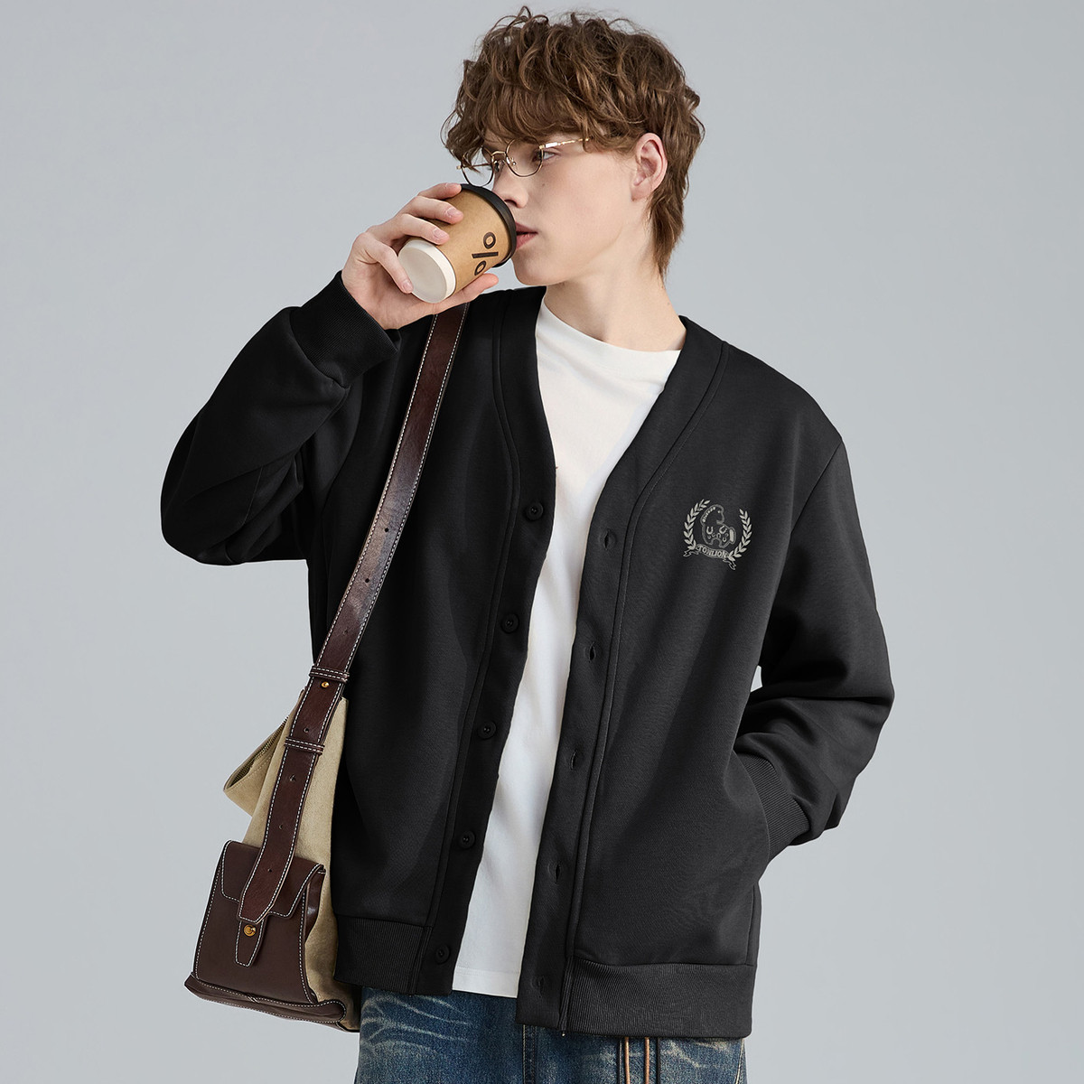 唐狮2026春季新款开衫卫衣外套男黑色设计美式学院宽松男款上衣