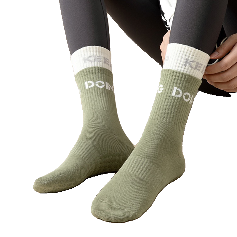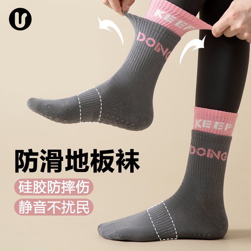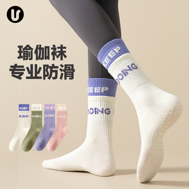 硅胶防滑瑜伽袜子女拼色中筒袜纯棉室内健身普拉提专业地板运动袜