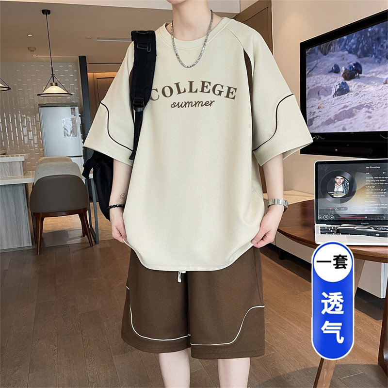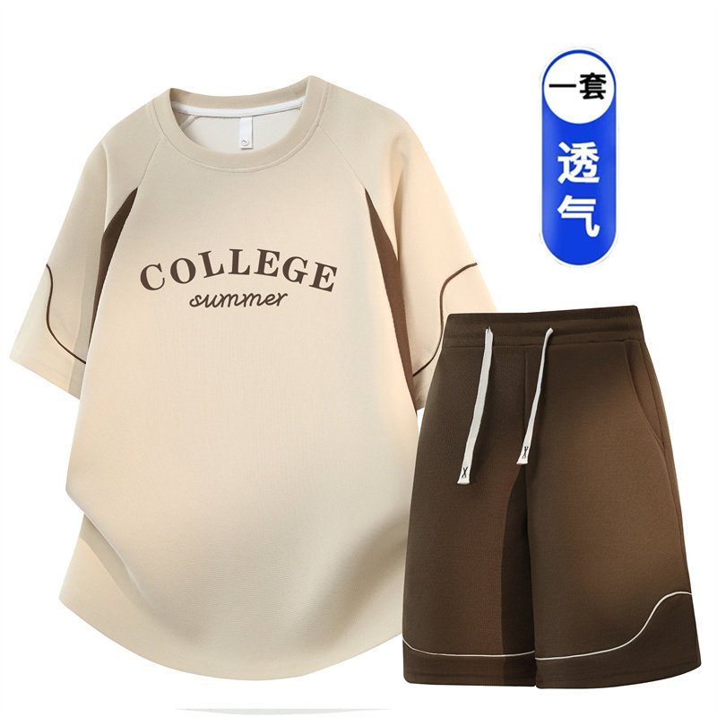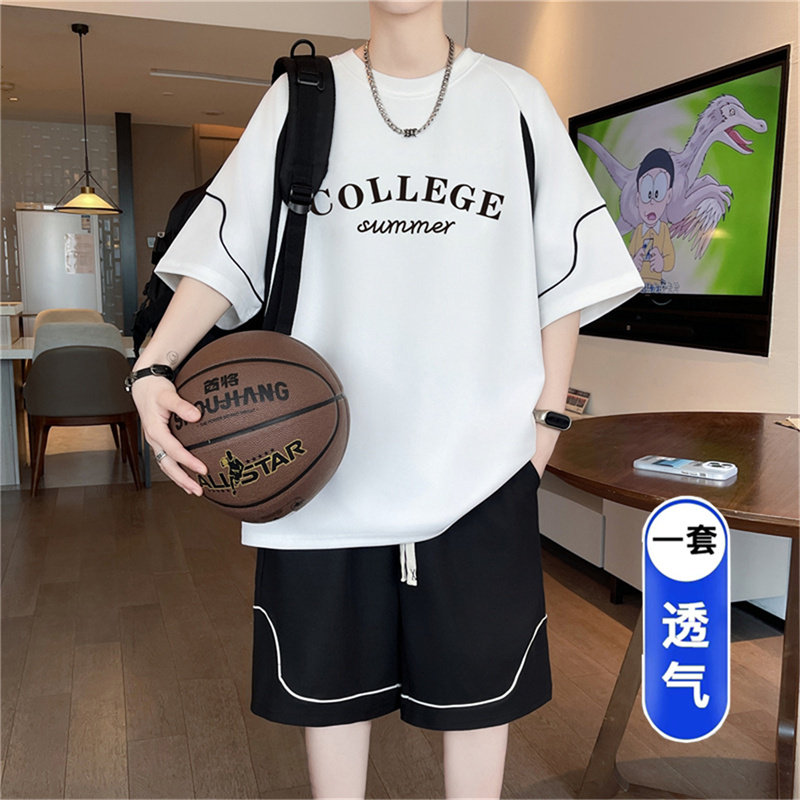 青少年夏季套装男生高中初中生冰感速干短袖t恤大童休闲运动衣服
