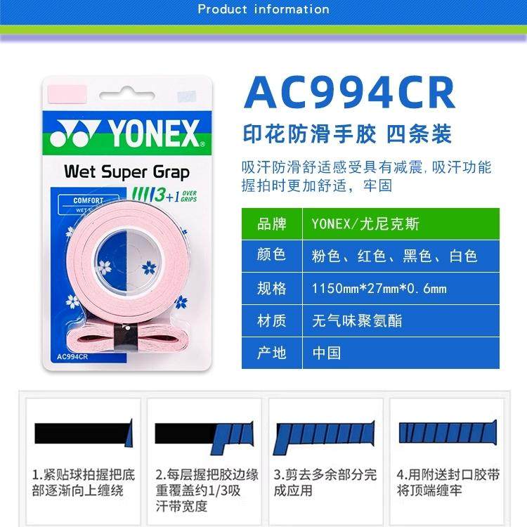 YONEX尤尼克斯AC994CR羽毛球拍手胶吸汗带防滑绑带印花四条装